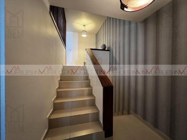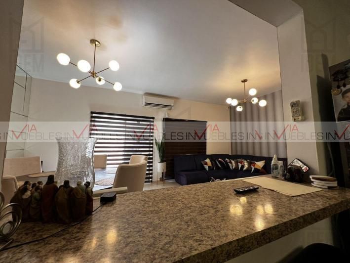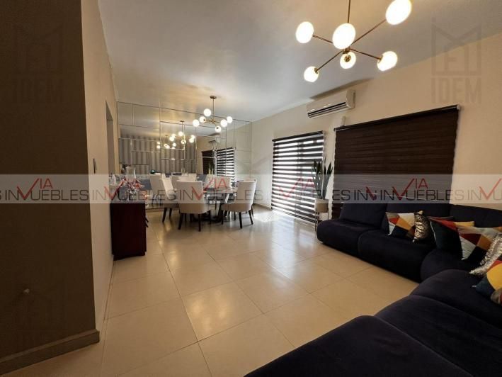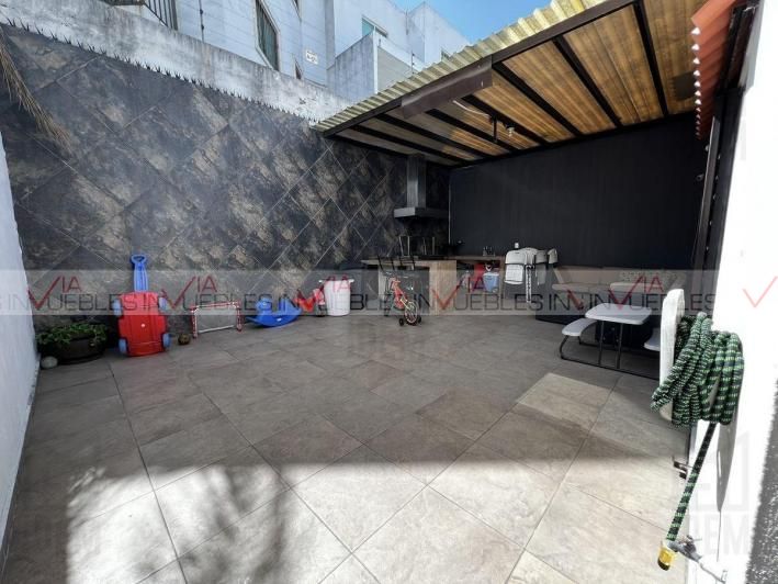 Bonita casa en Cumbres Élite noveno Sector, equipada, con acabados de madera, cocina integral, sala, comedor, recámara principal con vestidor y baño completo, 2 recámaras con baño compartido, patio amplio y con área social, barra y asador, pared. Cerca de centros comerciales, Avenidas de fácil acceso.