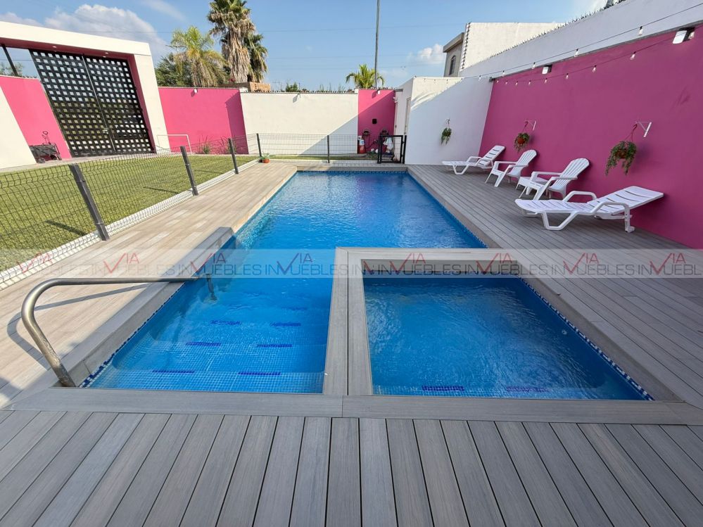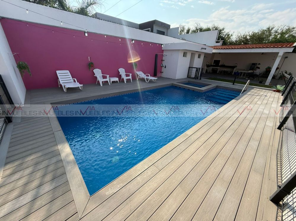 Cuenta con alberca en área cercada y con piso tipo deck recién instalado, palapa equipada con asador y refrigerador.