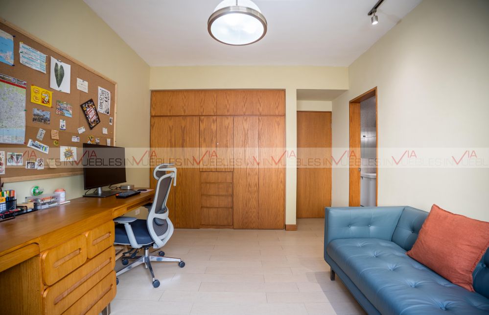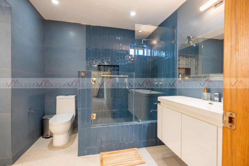 Tiene dos baños completos, un walk-in closet, un closet, medio baño de visitas, sala, comedor, cocina, lavandería y cuarto de servicio (con baño completo), dos cajones de estacionamiento y una terraza para disfrutar de un espacio al aire libre.