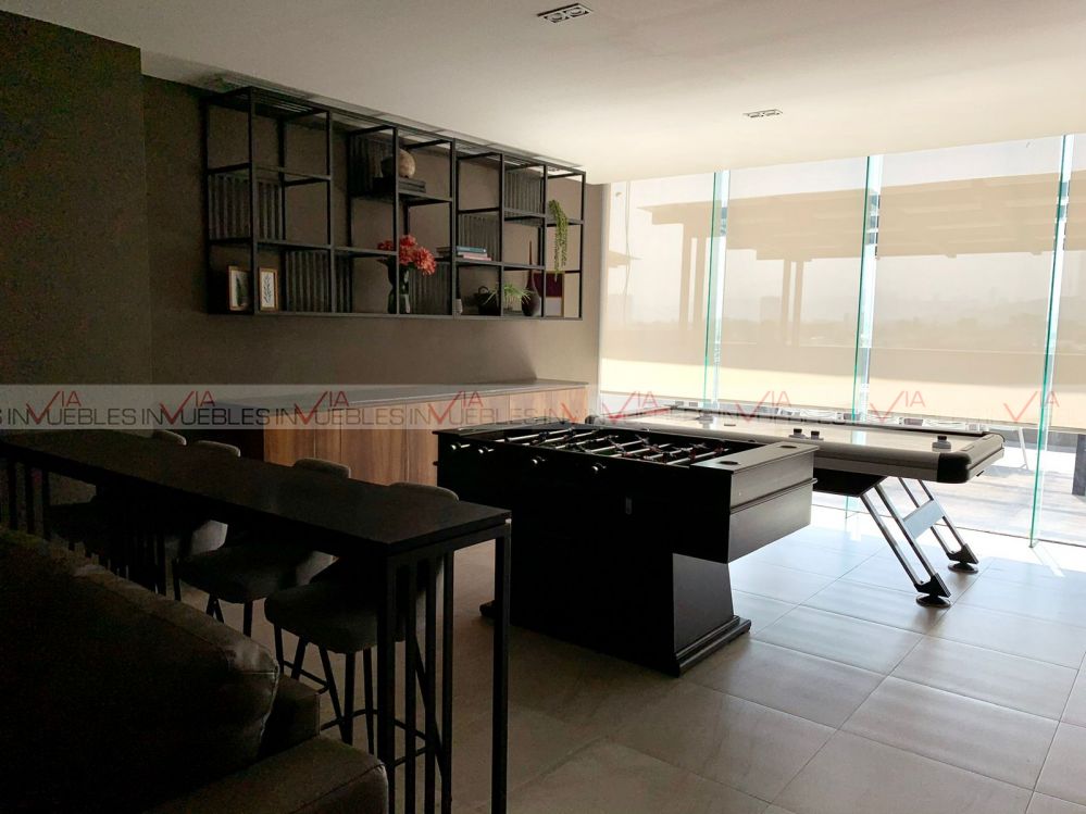 Departamento con excelente ubicación, 2 habitaciones, 2 baños completos, 2 cajones de estacionamiento (tándem), equipado con cocina, closets, multisplit y amueblado. Amenidades: salón de juegos, salón de eventos, ludoteca y asadores. El mantenimiento y agua están incluidos en la renta. El edificio es Pet Friendly.