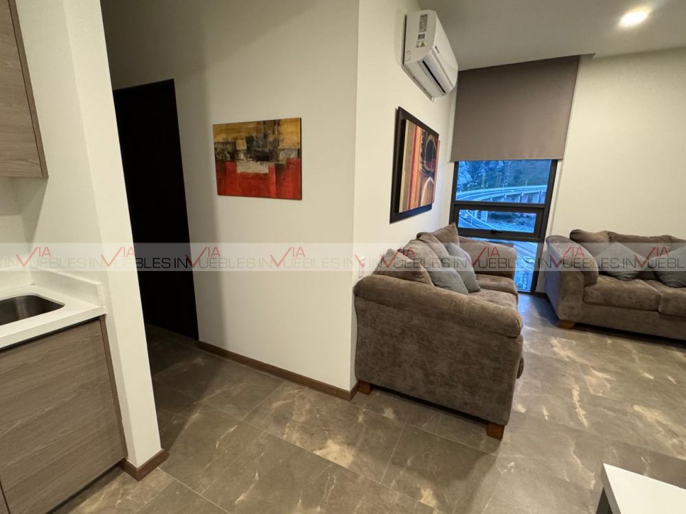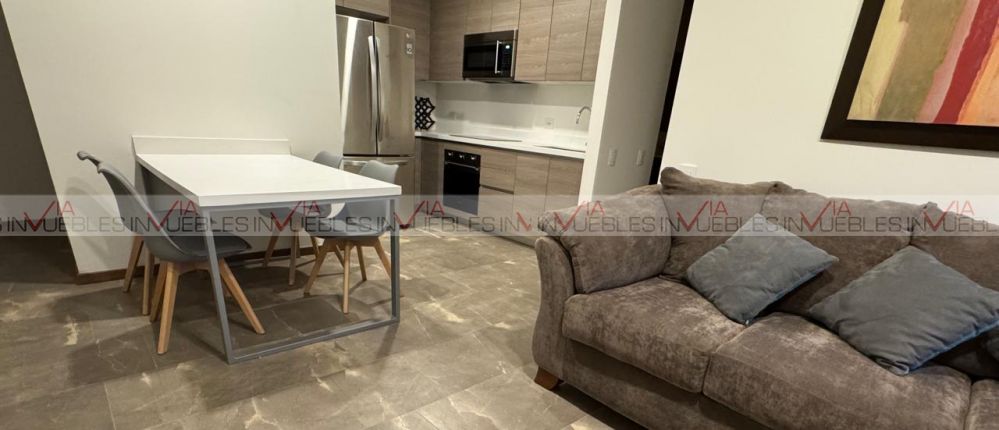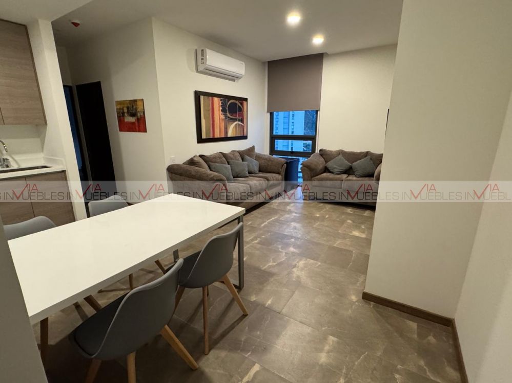 Departamento para estrenar en Torre Kanat, de 74 m2 en piso 6. Totalmente equipado y amueblado, de dos recamaras, principal con walking-closet y secundaria con closet de pared y cama canguro, 2 baños completos, incluye bodega y dos cajones de estacionamiento. Amplia área social que con acogedora sala y persianas que le dan un acabado de lujo y confort. Cocina equipada con barra de cuarcita, parrilla, horno, refrigerador y microondas-campana. Incluye area de lavado, con moderno centro de lavado, minisplits inverter en todas las áreas y boiler de paso. Torre nueva, con exclusivas amenidades: Salon de eventos, Arcade, Lobby, Business Center, Centro Culinario, Lounge, Sport Bar, Social Room, Gimnasio interior, Juegos Infantiles, Pies Descalzos, Área de Descanso, Área de Yoga, Alberca, Asadores, Fogateros, Dog Park y áreas verdes. Ubicado en Valle Poniente, zona de crecimiento y alta plusvalía, cerca de Prepa Tec, Universidad de Monterrey, Consulado Americano, ASFM, centros comerciales y de recreación y a solo 5 minutos de SPGG. No dejes pasar esta oportunidad de disfrutar todas esta comodidades y hacer una excelente inversión. Agenda tu cita y ven a conocerlo.