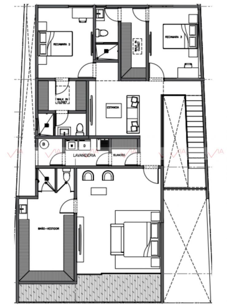 En la segunda planta se encuentra estancia para sala de tv, lavandería y closet para blancos, 2 Recamaras secundarias con su walking closet y baño.