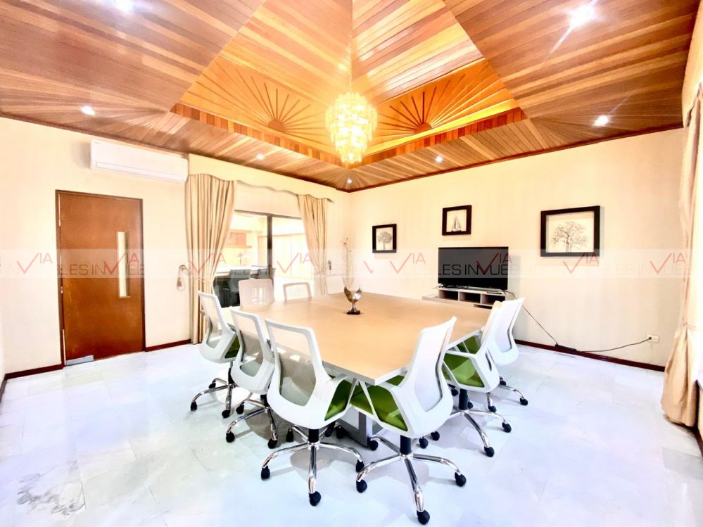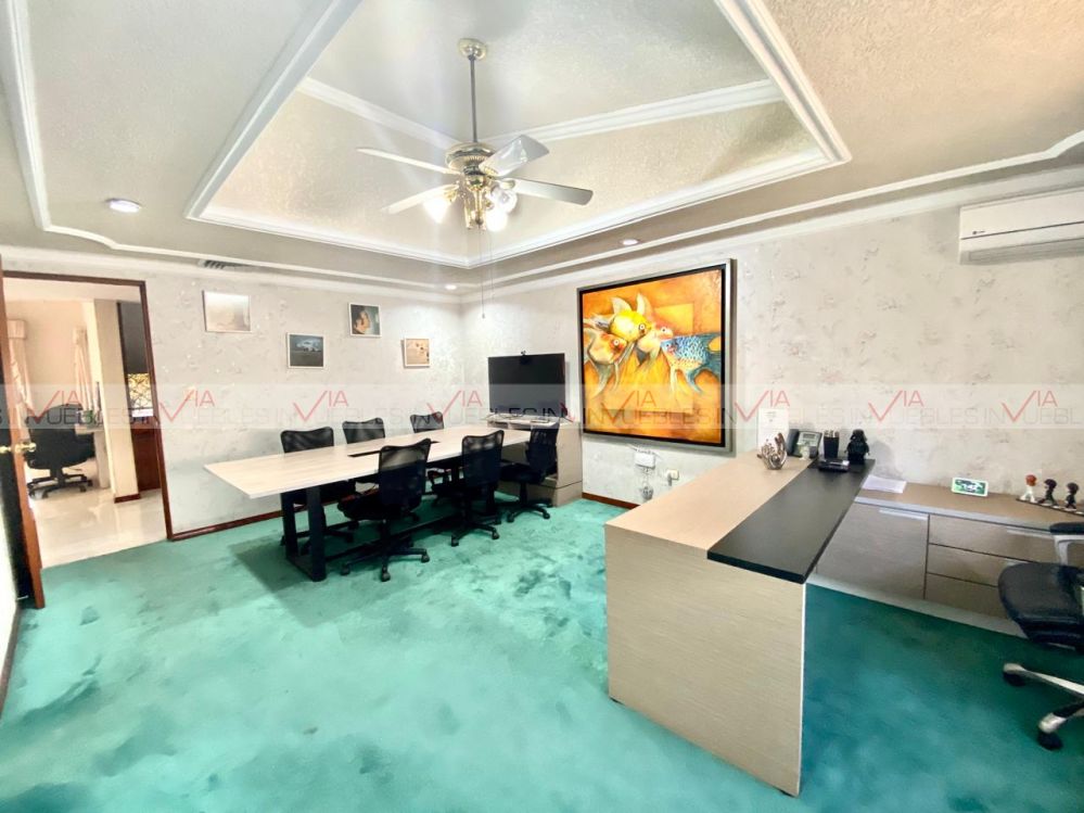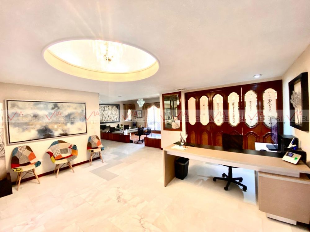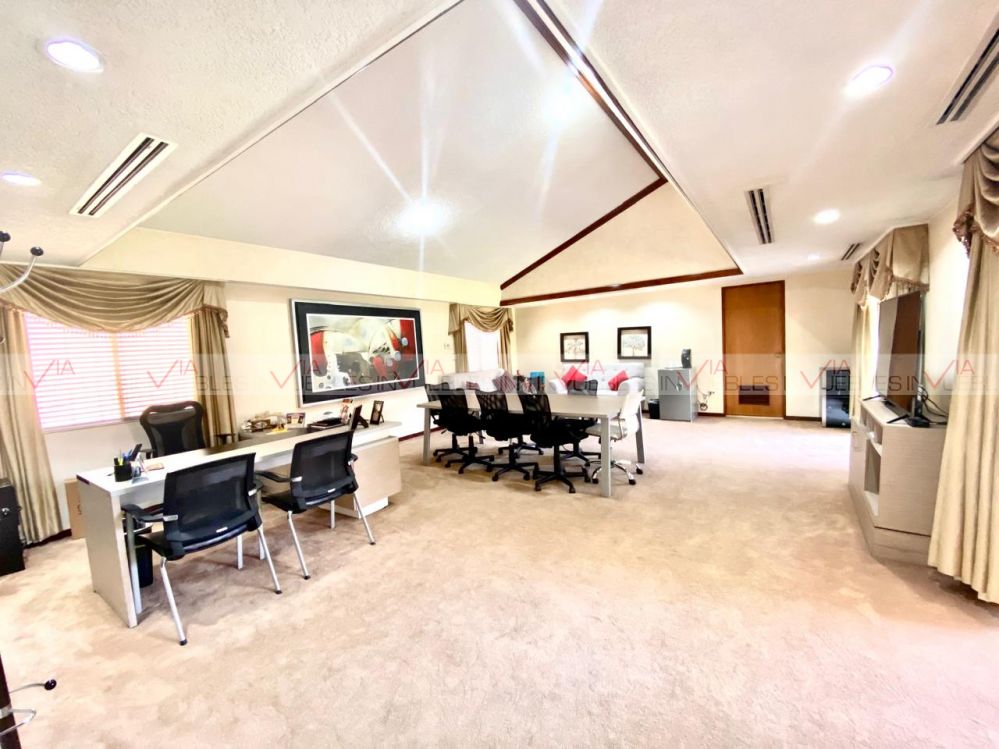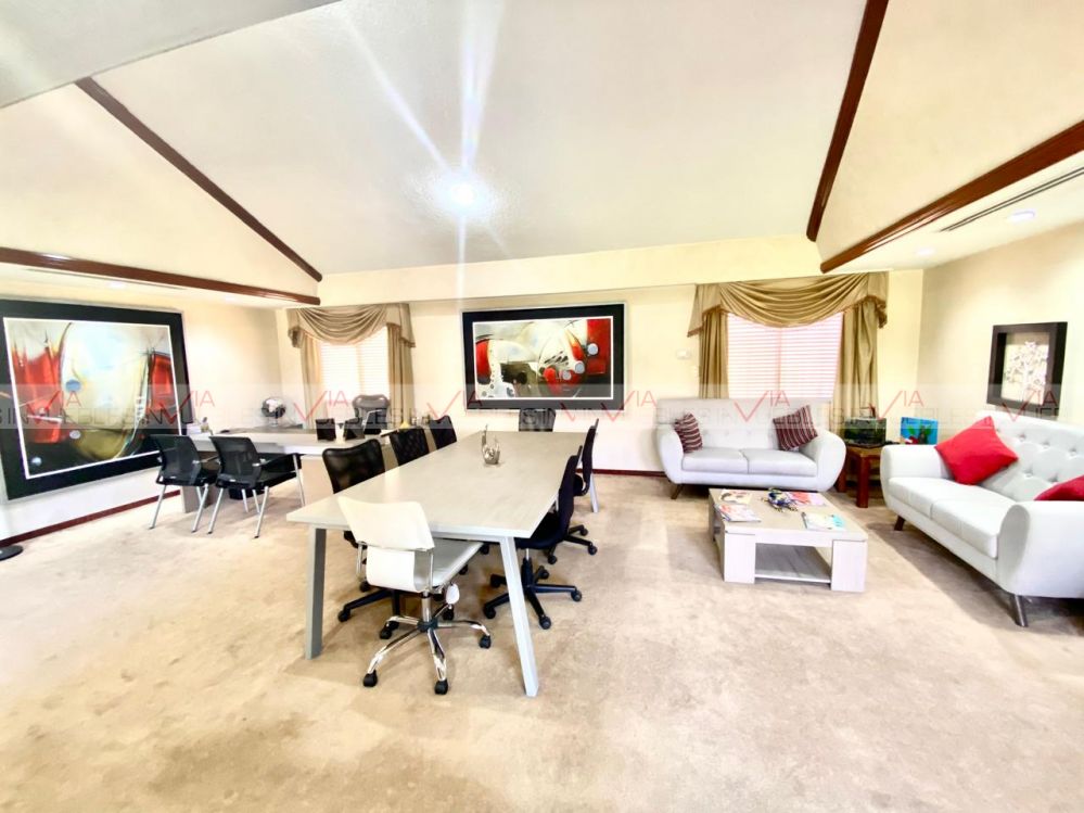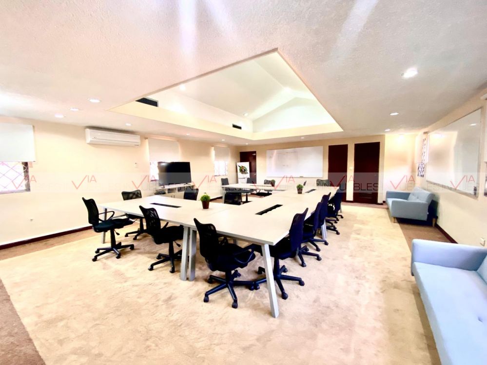 Renta de oficinas premium totalmente amuebladas y equipadas. Cuenta con 2 amplias salas de juntas, oficina de dirección espectacular, 3 oficinas grandes con baño y vestidor, 4 privados adicionales, recepción, cocina equipada y 2 comedores. 16 estacionamientos (10 interiores y 6 exteriores), lavandería y cuarto de servicio, cuarto de máquinas y 2 bodegas, patio central con palapa, asador y baño. Jardines interiores y exteriores.