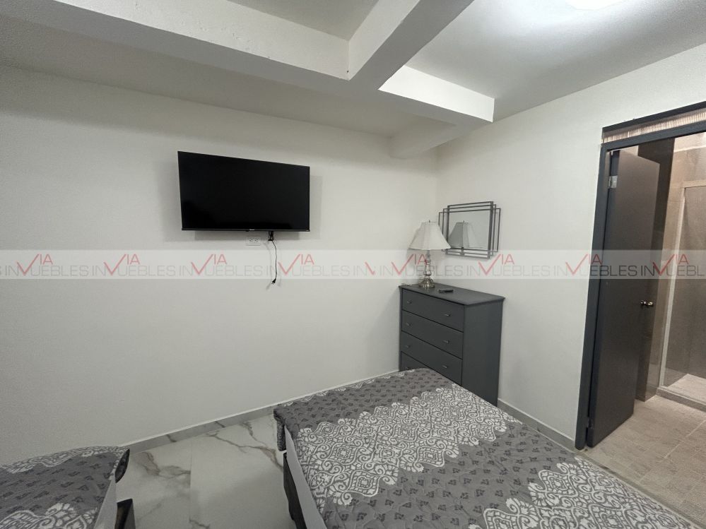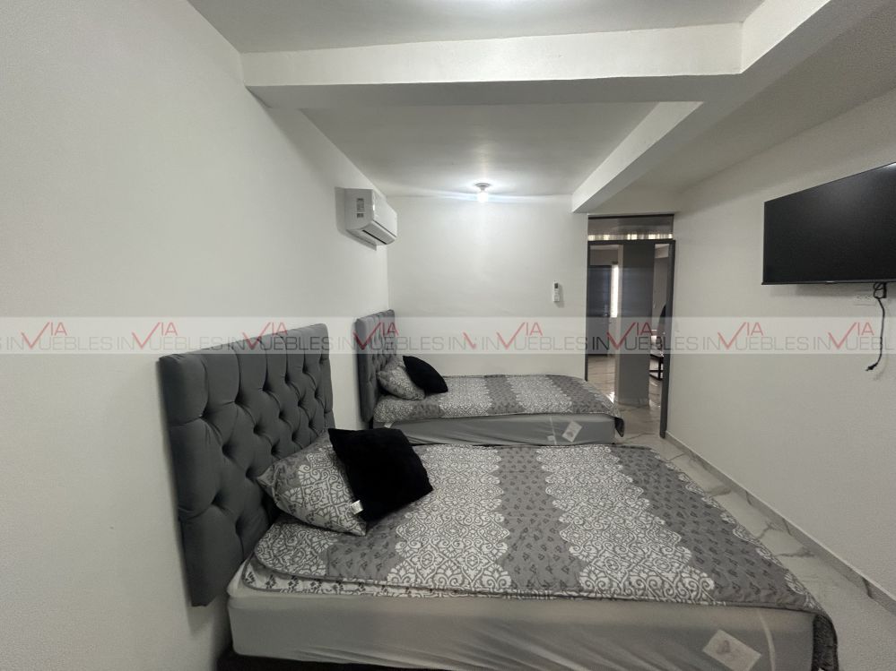 Bonita y equipada casa de un piso en renta en Guadalupe, N.L. muy cercana a HEB Av. Acapulco, cuenta con dos recamaras cada una con baño, sala comedor y cocina con estufa y electrodomésticos cuenta con cama Queen y dos individuales, cuenta con paneles solares y servicio de internet, una cochera sin techo.