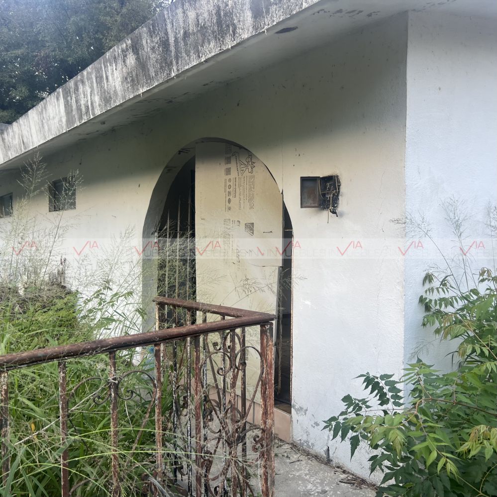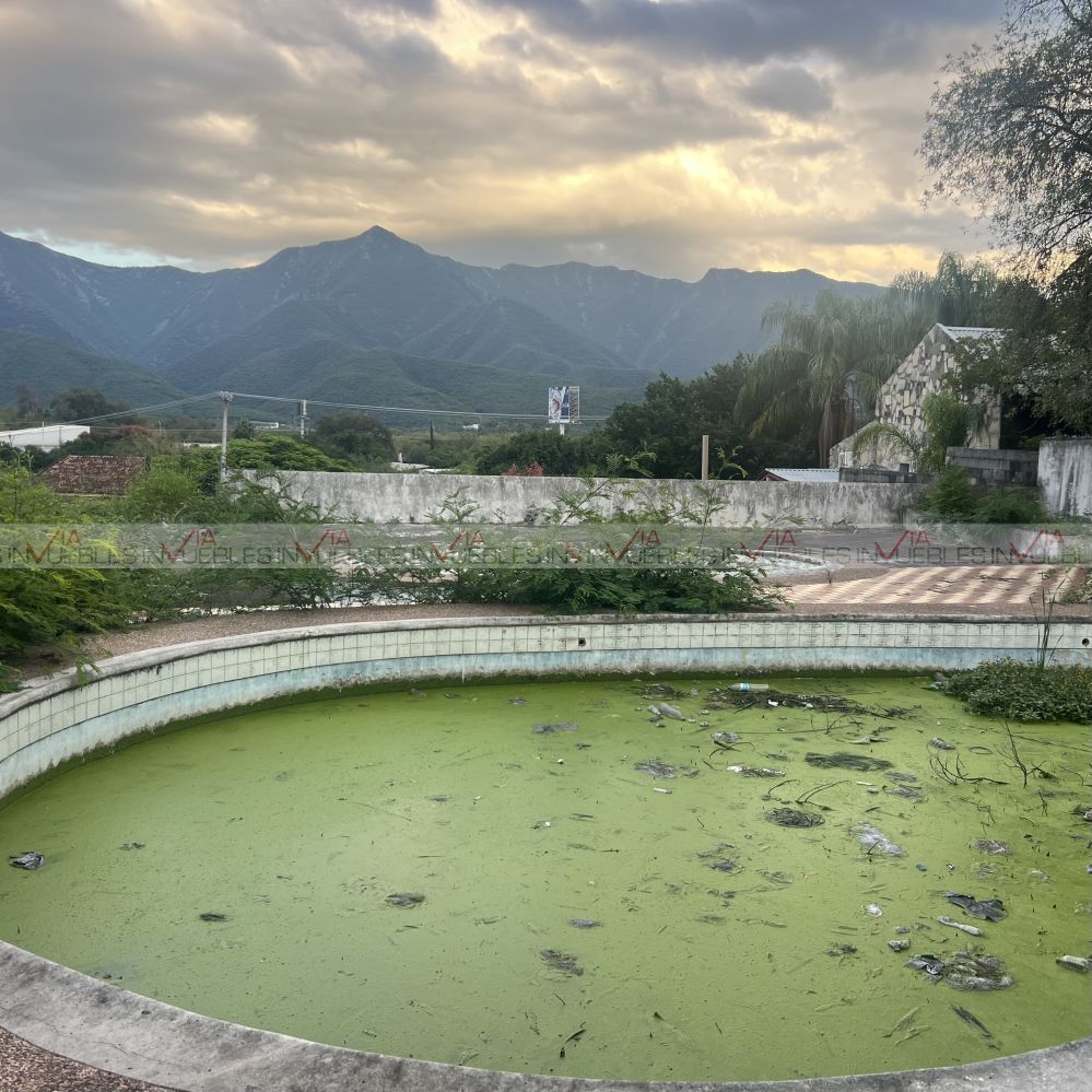 Venta de Quinta para remodelar en Santiago N.L. el Huajuquito, se encuentra en un terreno de 2,836.05M2 con 21.9 metros de frente y 129.50 metros de fondo, ascendente con rampa de concreto anti derrapante para vehículos, cuenta con 3 zonas planas, la primero completamente libre para construir, la segundo con albercas, terraza y baños, la tercera con una construcción aproximada de 250 metros cuadrados, de dos niveles, con muros de block, techos de concreto, ventanas y puertas de fierro, el primer nivel con piso de cemento y el segundo nivel con amplio salón con pisos cerámicos, baños, terraza y hermosas vistas panorámicas , antigüedad aproximada de 40 años, servicios de luz y A&D, excelente ubicación, muy cerca de carretera nacional. ¡Negociable!