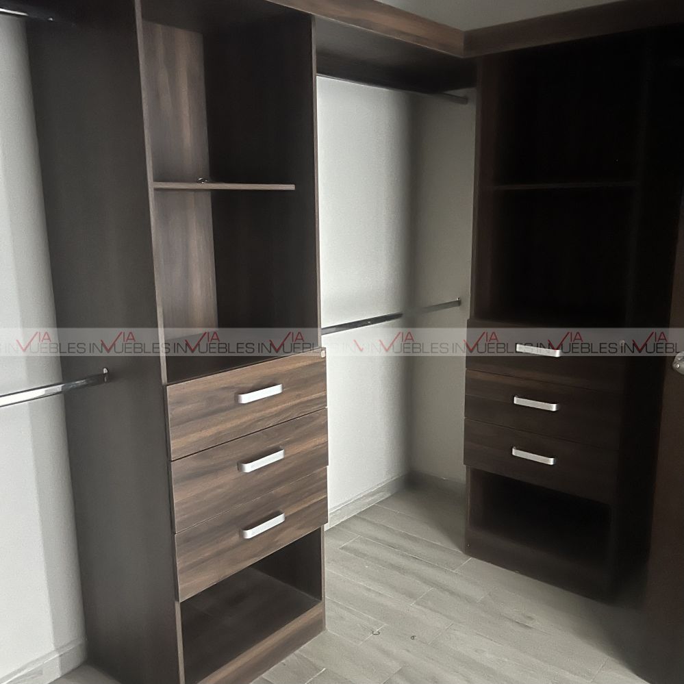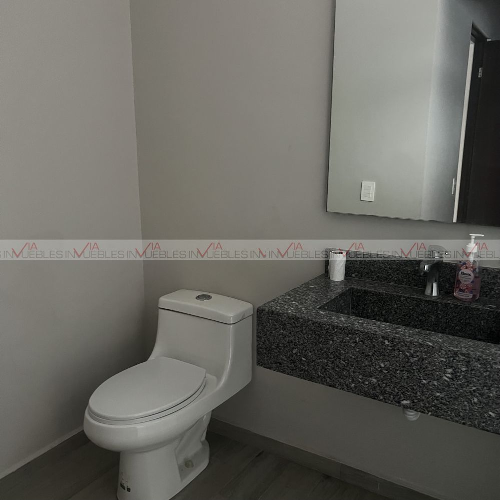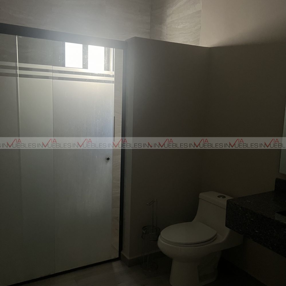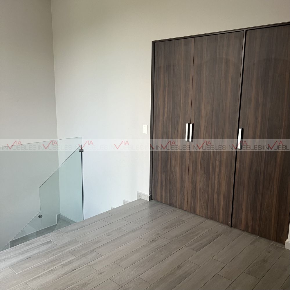Renta esta hermosa casa en el Cercado Santiago, N.L., con una construcción de 300 metros cuadrados en un terreno de 230 metros cuadrados. Con 3 amplias recámaras, cada una con balcón, minisplits, abanicos de techo, baño completo y walking closet, esta propiedad cuenta cocineta equipada con parrilla, campana, micro ondas, horno y refrigerador, lavandería con centro de lavado, boiler y cámaras de seguridad, cortinas y candiles en sala comedor, persianas black out en recámaras y family room. Amplio patio con barra de concreto, tarja y asador, 2 cajones de estacionamiento. Se aceptan mascotas. Disfruta de esta casa con todas las comodidades y hermosas vistas frente a parque.