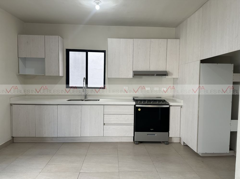 Casa en venta en Cumbres Gran Reserva Sector Pirineos, con 3 plantas y un diseño moderno de 3 años de antigüedad. Esta propiedad de 260 metros cuadrados de construcción cuenta con 3 recámaras con walk-in closet y baño completo cada una de ellas, 2 medios baños, estancia en segundo piso y 2 cajones de estacionamiento. Equipada con minisplit, cocina, estufa y sistema de sonido en sala-comedor. Amplia terraza para eventos sociales con asador en tercer piso, cuyo acceso es independiente a la primer planta. Ubicada en fraccionamiento privado vigilancia 24/7, alberca y casa club.