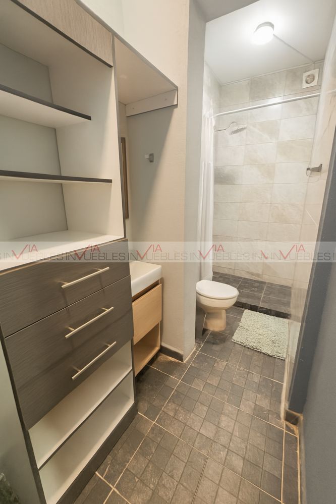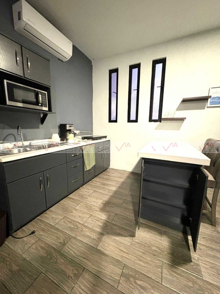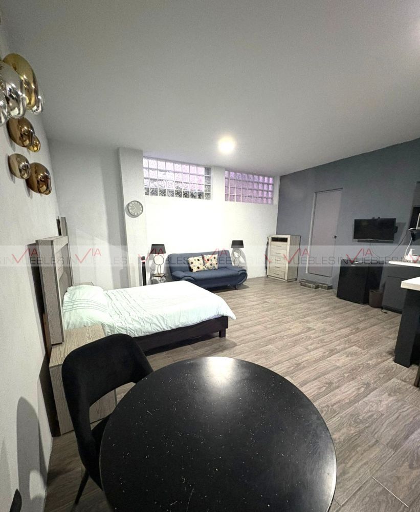 Moderno y acogedor departamento tipo loft, ubicado en zona miravalle en mpo de san pedro, ubicado en una zona privilegiada por ser colonia privada con hermosas áreas verdes. El depto. cuenta con 1recamara 1 baño, cocina equipada, frigo bar, microondas, minisplit y un espacioso closet. Servicios incluidos. Entrada independiente, Contrato a seis meses sujeto a renovación