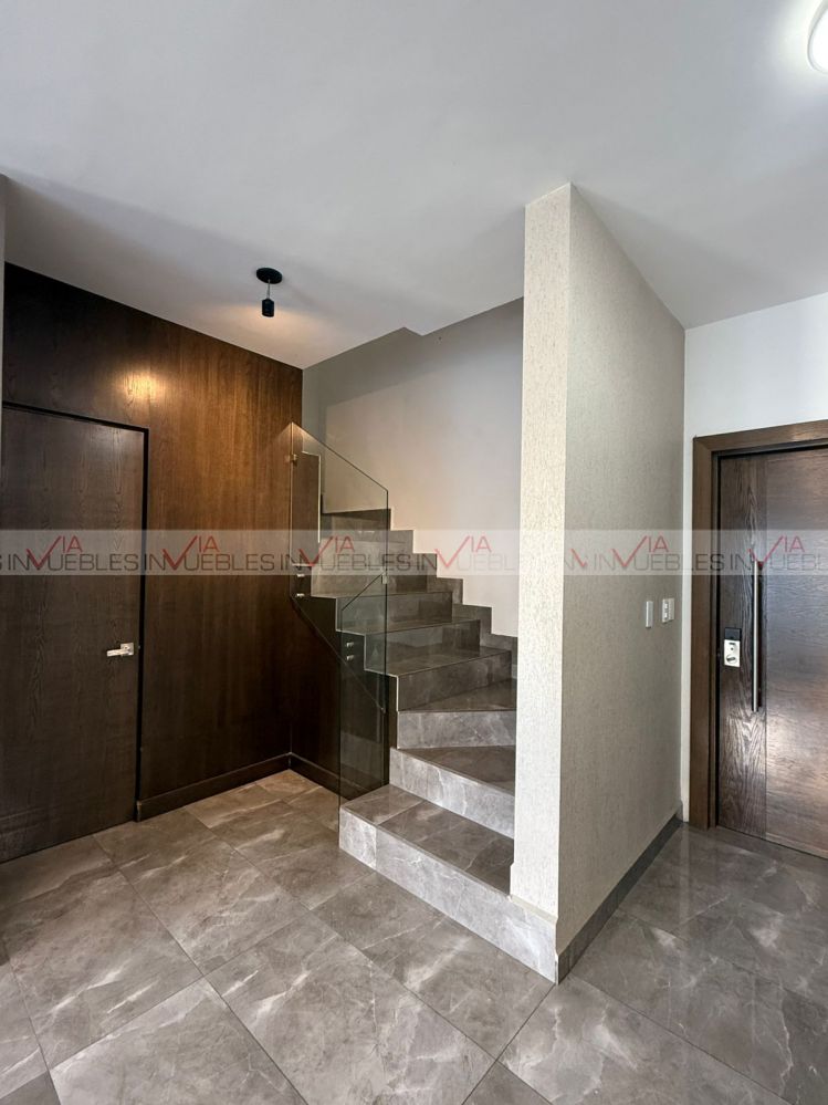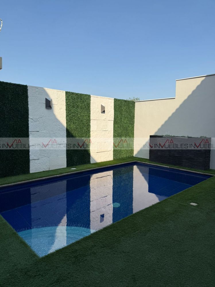 Casa moderna y recién remodelada, con acabados de lujo, alberca y excelente ubicación cerca de Paseo de los Leones, Ruiz Cortines y Lincoln. Distribución:
