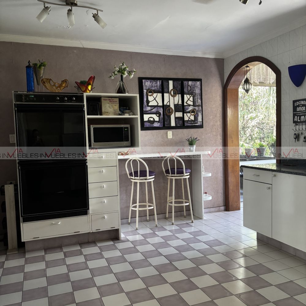 Cocina independiente con acceso al hermoso antecomedor con vista al jardín a través de ventanales de cristal.