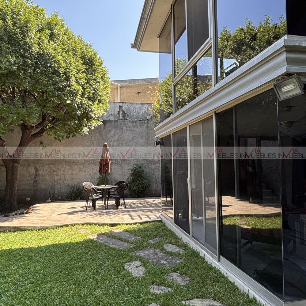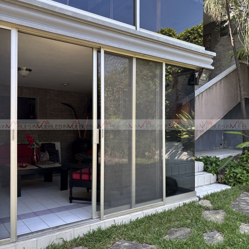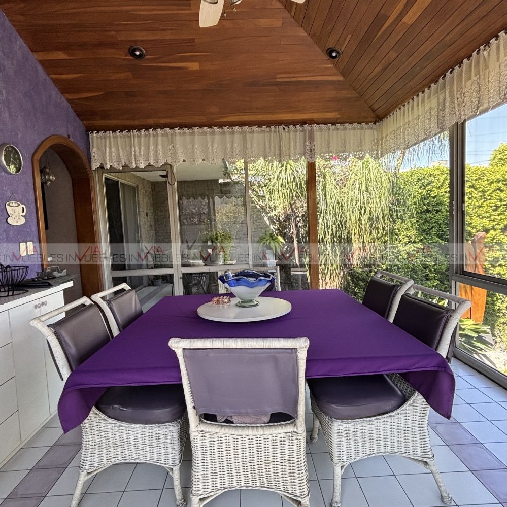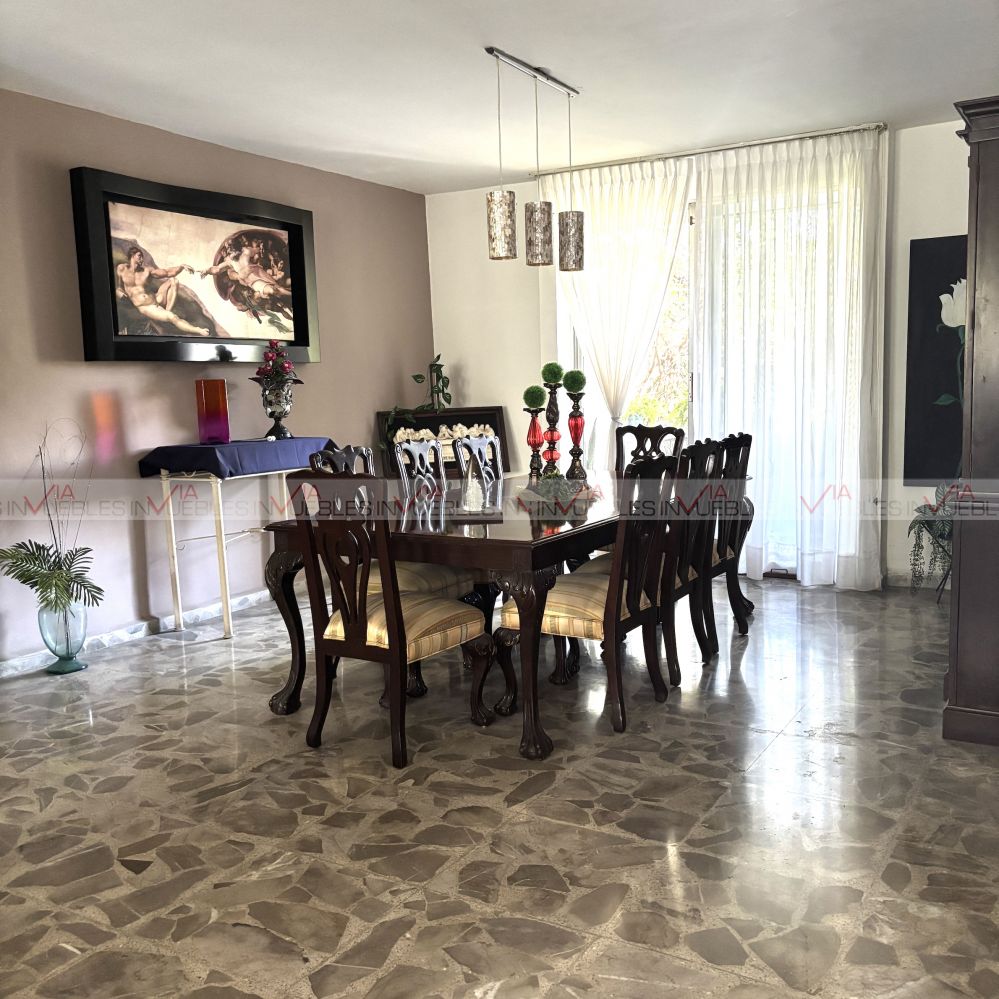 El jardín está en excelentes condiciones con fuente, terraza, hermosa vegetación y árboles; asador, trinchador, pérgola y cuarto de reuniones.