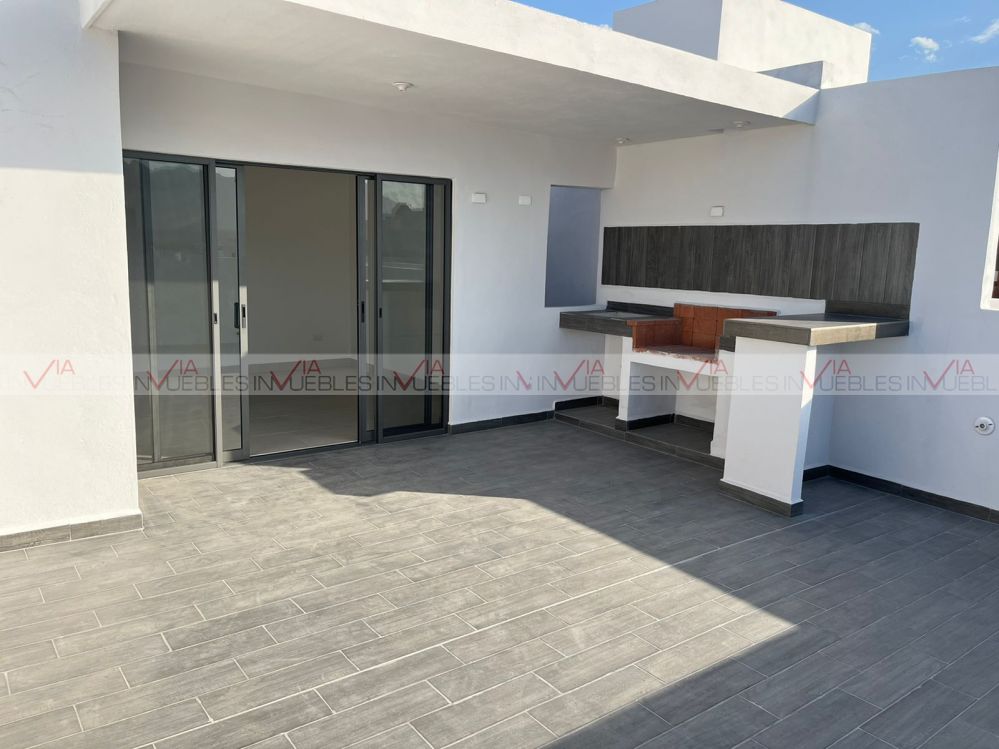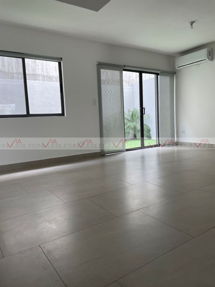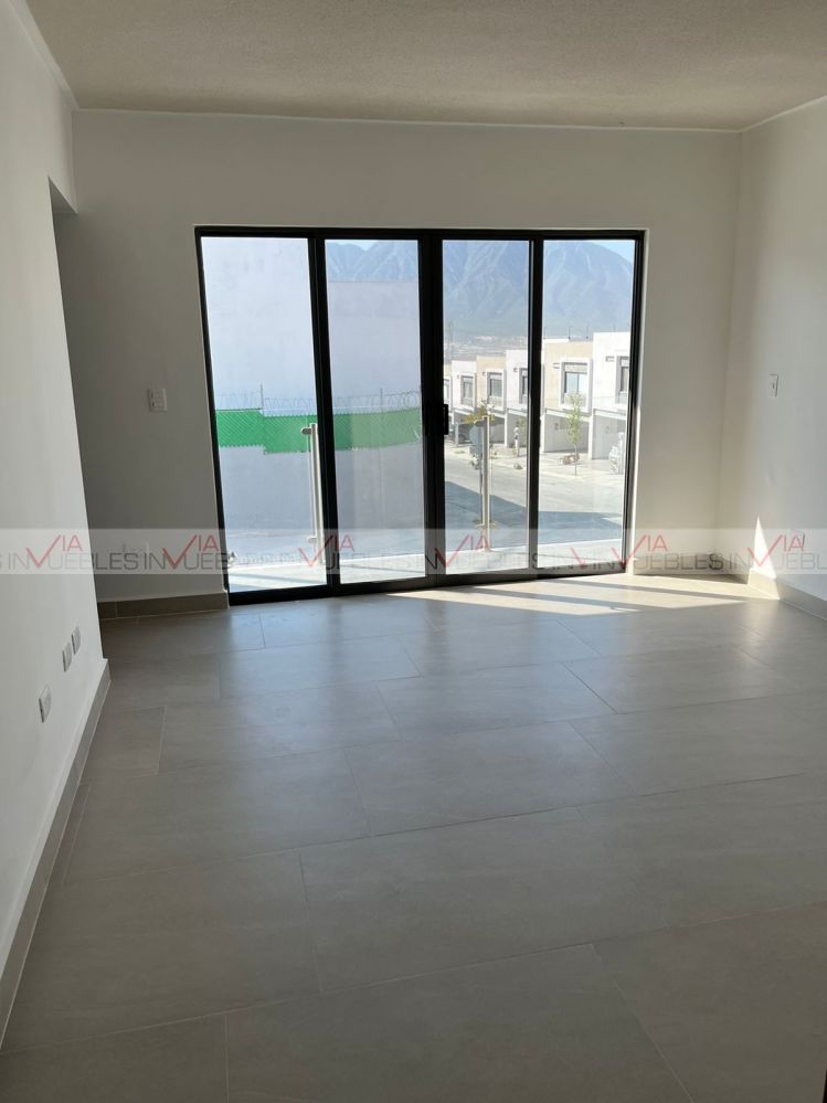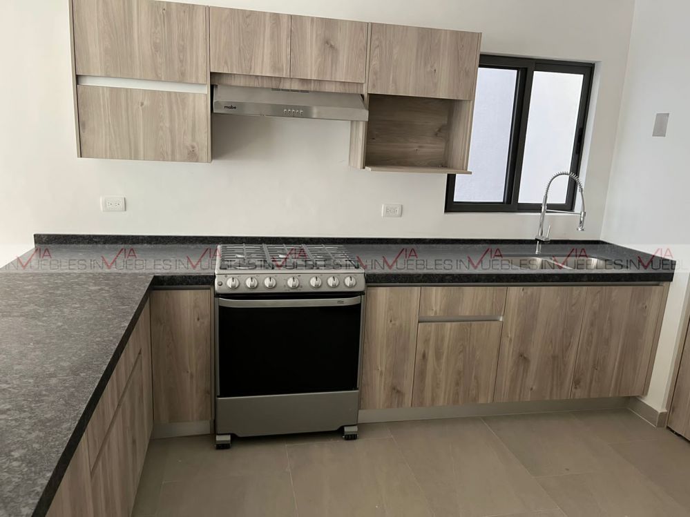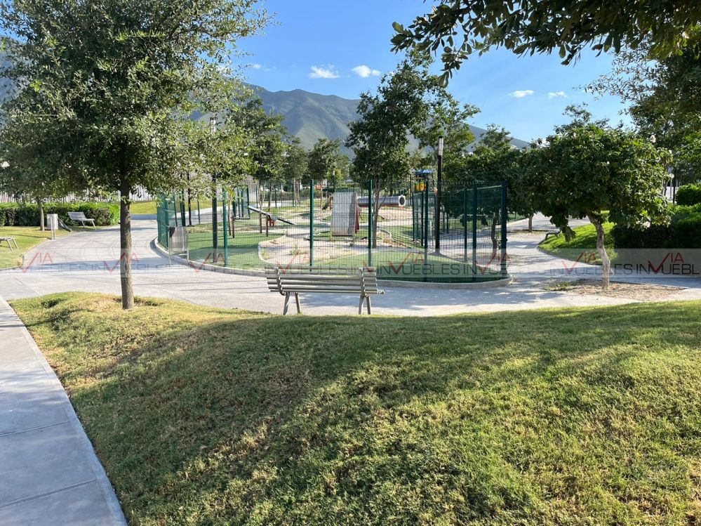 Hermosa casa lista para habitarse, en Fracc. con acceso controlado en zona Dominio Cumbres. Casa de 3 Pisos: Primer piso cuenta con sala, comedor, cocina (equipada con cocina integral de granito, estufa, y campana), área de lavandería cerrada, 1/2 baño, patio trasero decorado con pasto sintético, cochera techada para dos carros.
