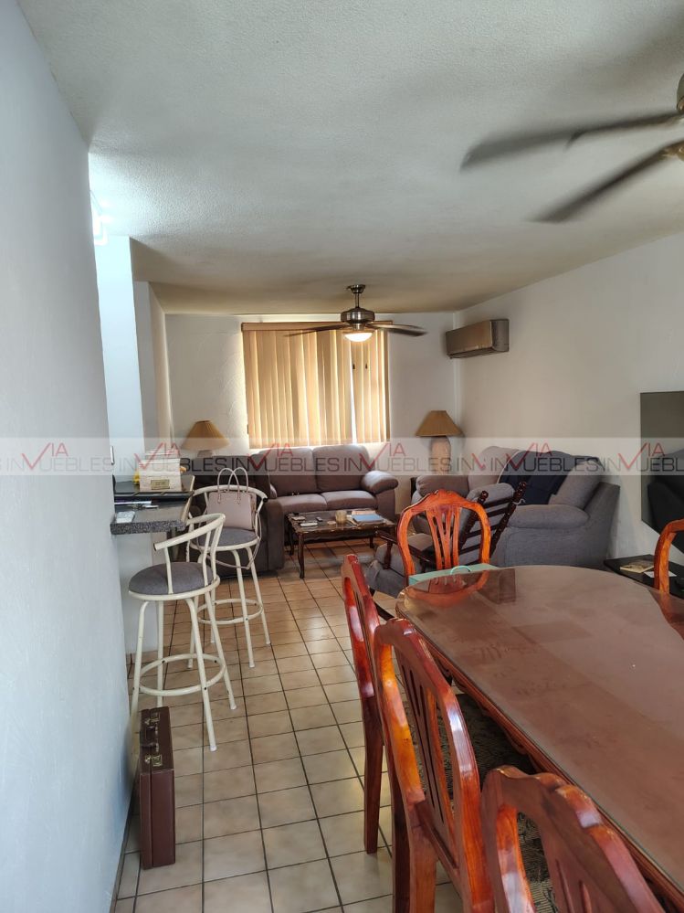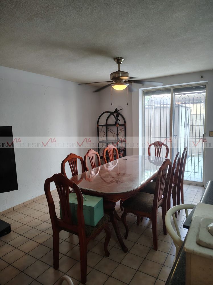 Casa de dos plantas equipada y amueblada, cochera para dos autos, sala comedor, cocina integral con estufa y refrigerador, medio baño, lavandería con lavadora, secadora, boiler, patio y pasillo de servicio, planta alta; 3 recamaras, 2 recamaras con closet y recamara principal con vestidor y baño completo, baño completo compartido. Requiere Póliza Jurídica