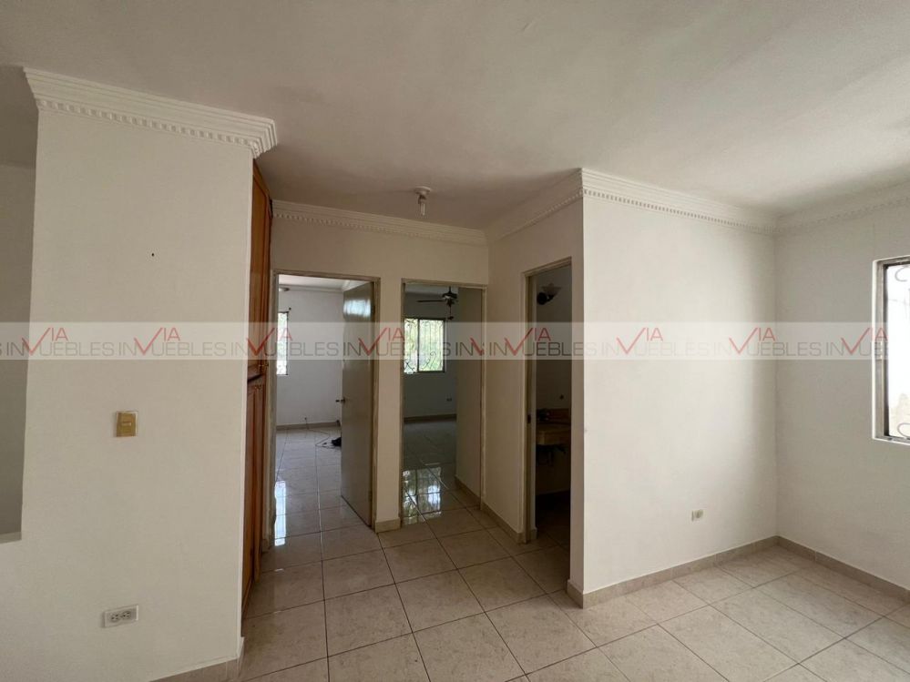 Excelente propiedad lista para habitar, el fraccionamiento cuenta con control de acceso. La casa cuenta con una cochera doble techada con porton automatico, en la planta baja cuenta con medio baño, sala, comedory cocina con barra y alacena que se conecta con la lavanderia l cual esta techada y tambien es cuarto de servicio con regadera y sanitario y un pequeño patio trasero. La segunda planta tiene una amplia estancia familair con area para blancos y un baño compartido para las recamaras secundarias, ambas con closet y minisplit. Al frente se encuentra la recamara principal muy amplia con vista al parque. La propiedad se encuentra frente al parque que cuenta con canchas de futbol, juegos para niños, areas verdes,area para hacer ejercicio y un area destinada a las mascotas. Con excelente ubicacion para acceder rapidamente a las avenidas mas importantes del sector