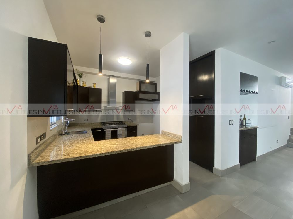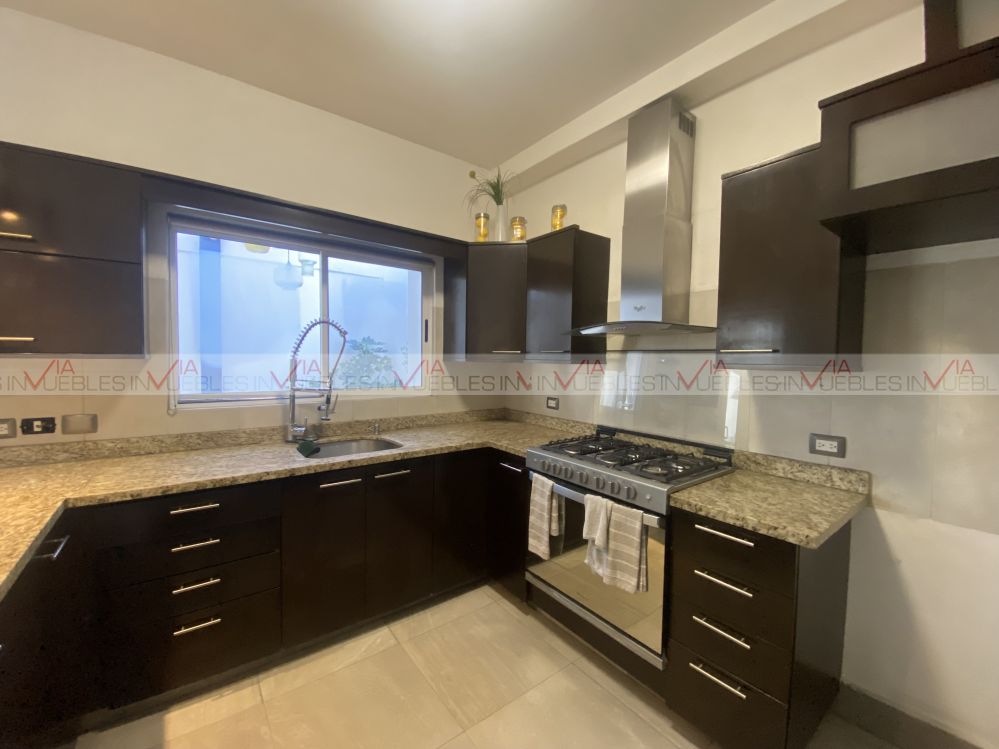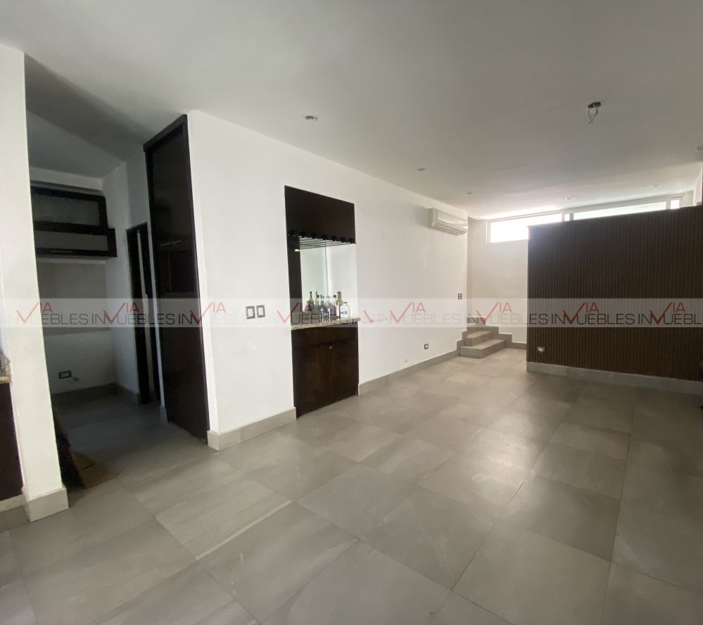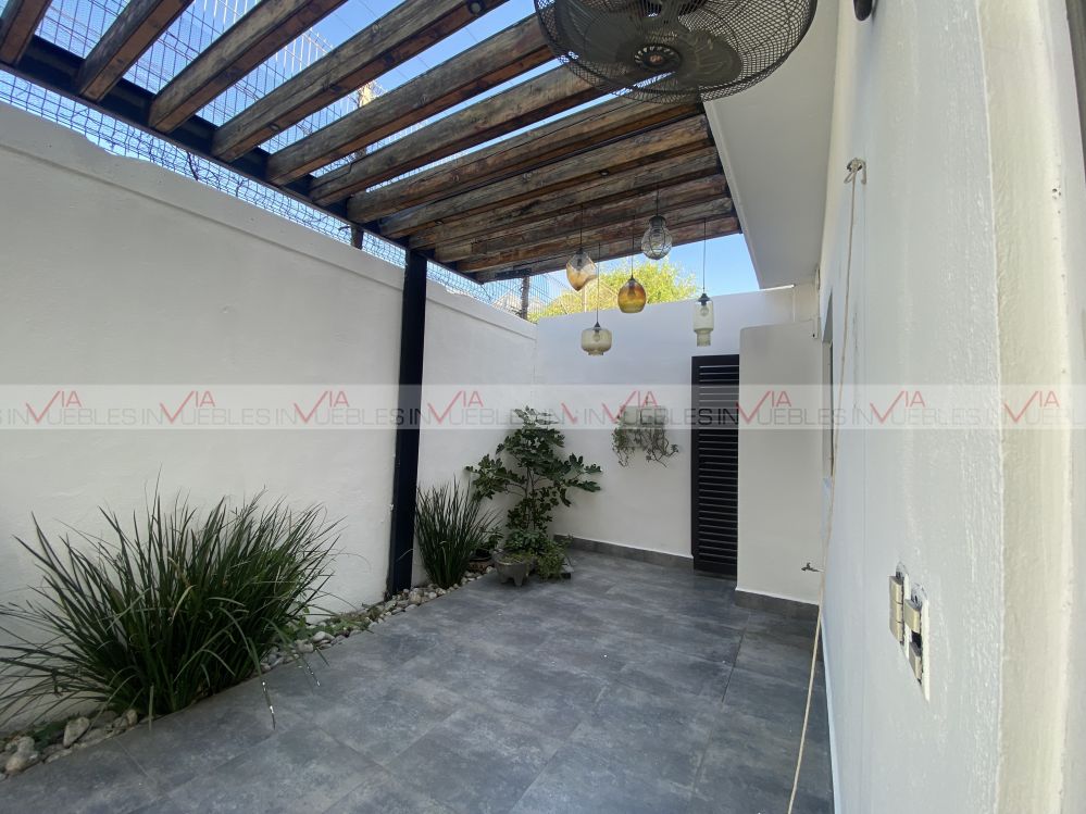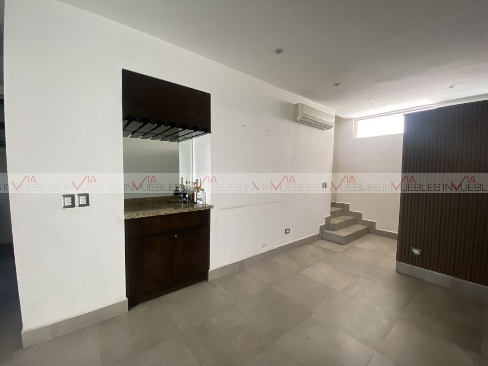 Bonita casa en renta en fraccionamiento privado en Santa Catarina, muy buena ubicación, a tres minutos de San Pedro y muy cerca de importantes colegios y Universidades, la casa consta de cochera doble techada con bodega, sala, comedor, cocina equipada, lavandería, cuarto de servicio, patio con asador en el primer nivel, en el segundo nivel están una estancia, recámara principal con baño vestidor, dos recámaras secundarias que comparten baño más una recámara principal que puede funcionar como office, gimnasio, nursery, etc. El fraccionamiento cuenta con dos parques con juegos infantiles, cancha de soccer, terraza con un área para eventos.
