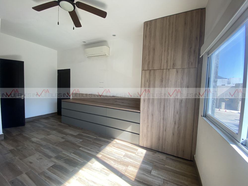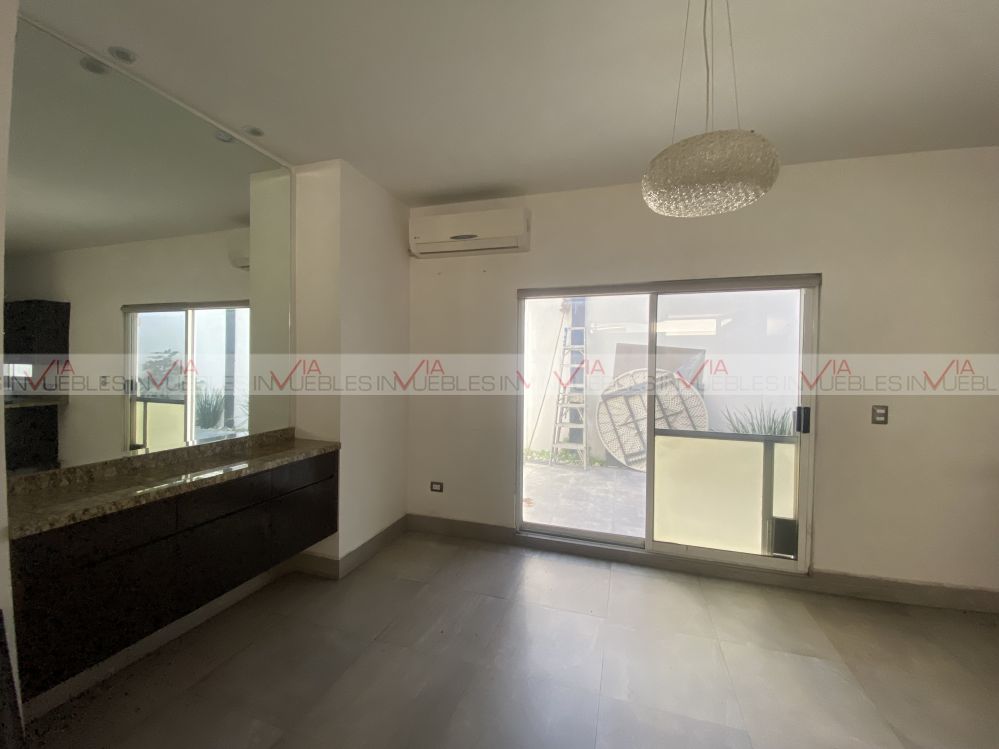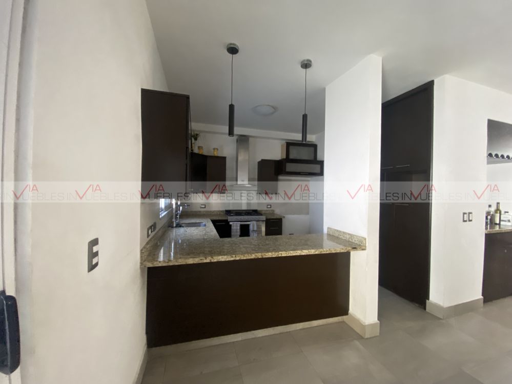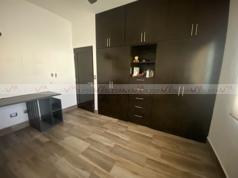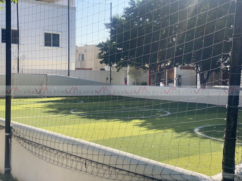 Bonita casa en renta en fraccionamiento privado en Santa Catarina, muy buena ubicación, a tres minutos de San Pedro y muy cerca de importantes colegios y Universidades, la casa consta de cochera doble techada con bodega, sala, comedor, cocina equipada, lavandería, cuarto de servicio, patio con asador en el primer nivel, en el segundo nivel están una estancia, recámara principal con baño vestidor, dos recámaras secundarias que comparten baño más una recámara principal que puede funcionar como office, gimnasio, nursery, etc. El fraccionamiento cuenta con dos parques con juegos infantiles, cancha de soccer, terraza con un área para eventos.