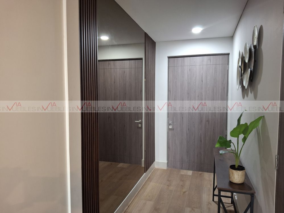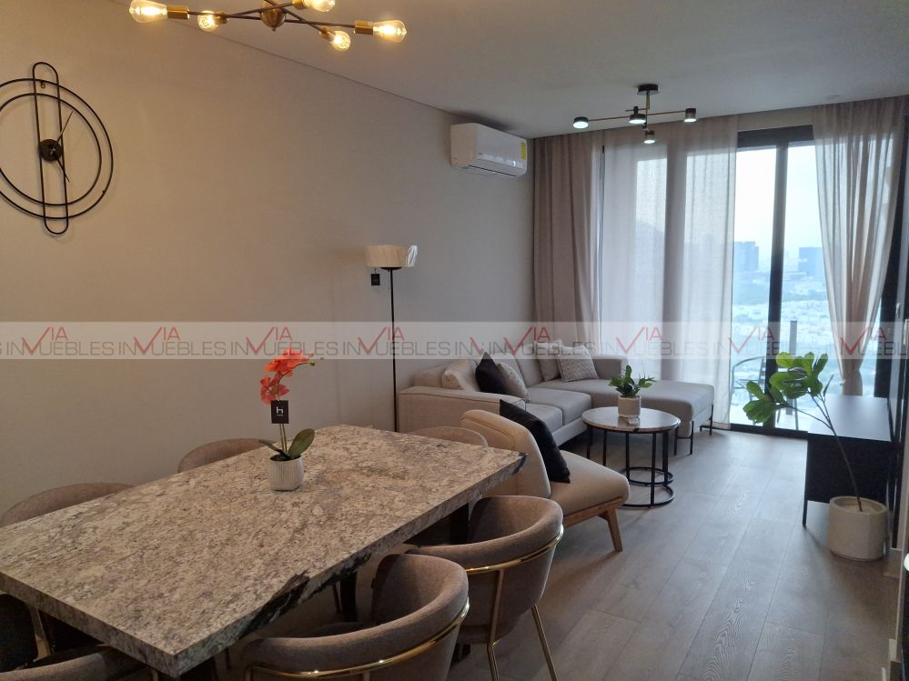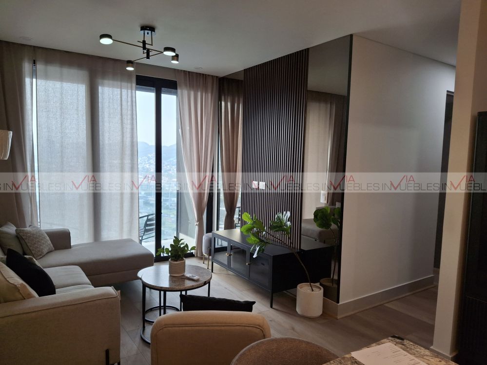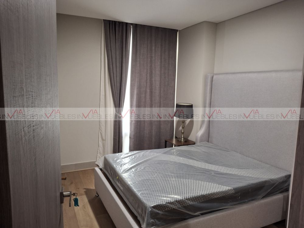 Hermoso departamento ubicado en el area de Valle Oriente, completamente nuevo y listo para habitarse, cuenta con todas las comodidades además de haber sido fiseñado y decorado por expertos arquitectos haciéndolo no solo cómodo y funcional sino muy agradable a la vista. Cuenta con dos recámaras una con cama king size y walk in closet, la ropería es amplia y con los espacios muy bien aprovechados. La segunda recamara tiene closet de pared. El area social es amplia y bien iluminada por una puerta corrediza que da a un balcon con uma vista espectacular que solo un piso 15 te puede otorgar. Las amenidades estan a la altura del lugar, alberca, asadores, ludoteca, un amplio y equipado gimnasio ademas de salones de eventos que puedes separar para tus compromisos. La ubicacion es lo mas incteible rapido acceso hacia otras areas como Centro y Carretera Nacional. Ven a conocerlo y aprovecha que esta completamente nuevo. No se aceptan mascotas, estudiantes previa investigacion. Se requieren dos meses de deposito.
