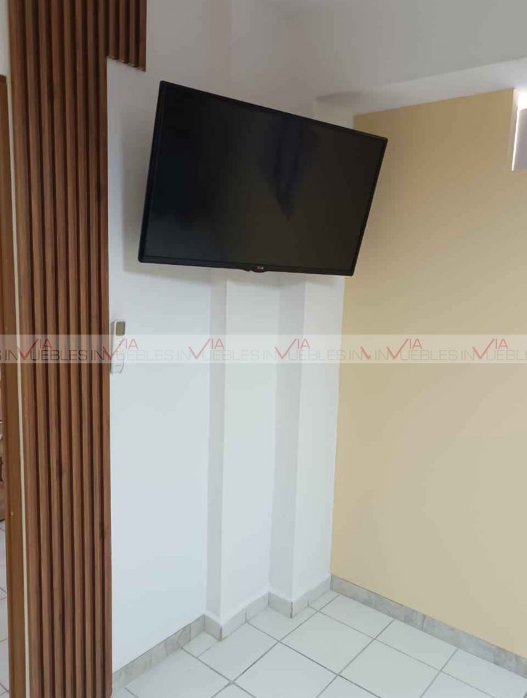 Escritorio con cajones, Silla ejecutiva, Archivero flotante, Consola de madera, TV LG, Dos sillas para visitas, Extintor de incendios, Minisplit Mirage 1T frio y calor, Alarma anti incendios, Iluminación decorativa colgante LED, Lámpara de emergencia.