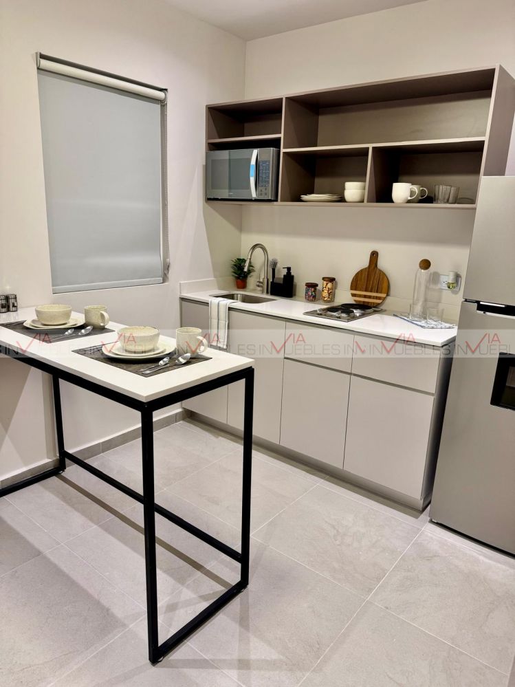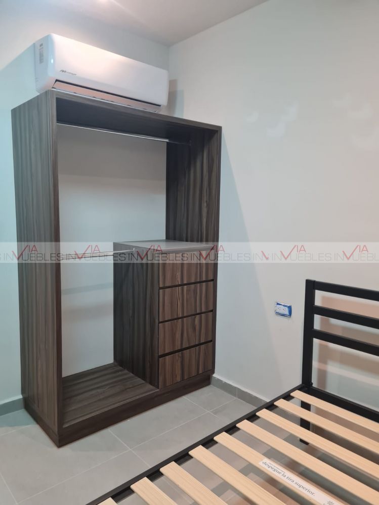 Hermoso departamento tipo loft en renta en Mitras Norte de 1 recamara, recién remodelado, equipado con minisplit frio-calor, cocina, refrigerador, parrilla electrica de 2 quemadores, horno de microondas, closet, cama, lava secadora. Con excelente ubicación muy cerca de la estación del metro y a unas cuadras de avenida Lincoln y Gonzalitos.