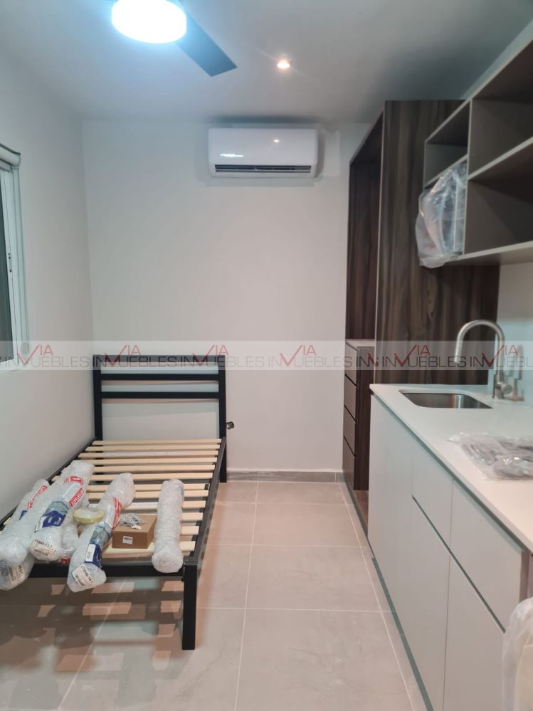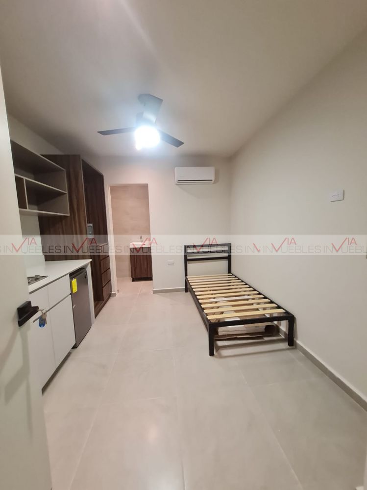 Departamento tipo loft en renta en Mitras Norte, recien remodelado, equipado con frigobar, estufa electrica de 2 quemadores, microondas, closet, cama, minisplit frio calor, la renta incluye agua y WiFi. Con excelente ubicacion cerca de la estacion del metro Alfonso Reyes, y de Av Gonzalitos y Lincoln.