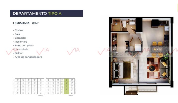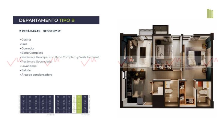 Departamentos de 1 y 2 recámaras con tipologías desde 49 hasta 67m2.