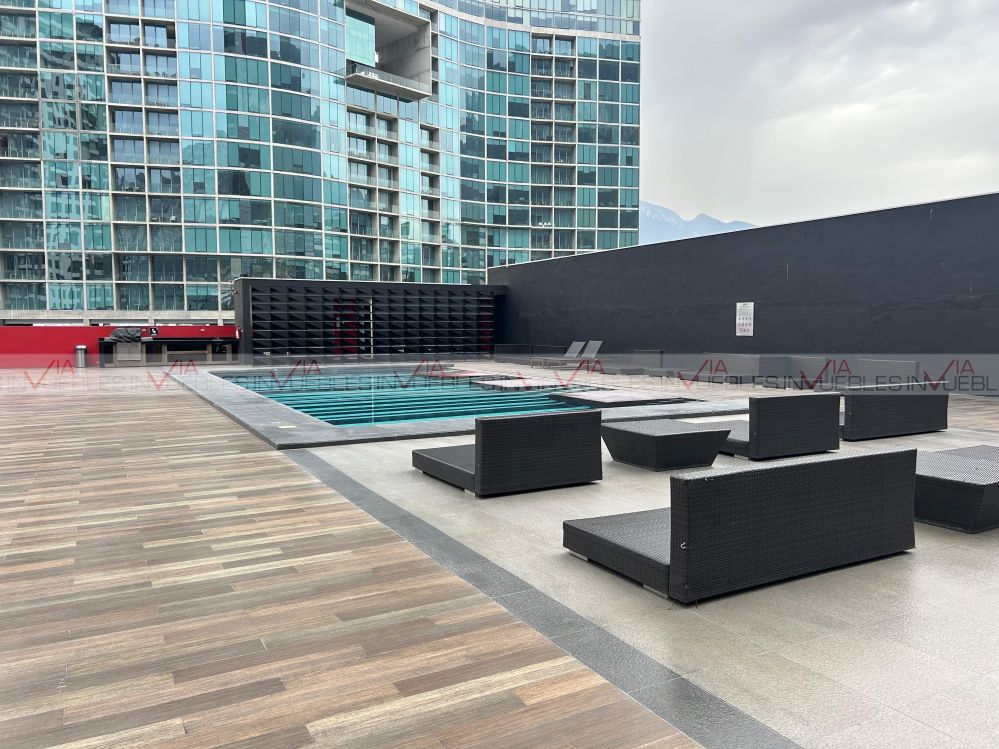 Loft con hermosas vistas ubicado en Torre Lovft an la exclusiva zona de Valle Poniente ideal para ejecutivo. Cuenta con un cajón de estacionamiento,terraza, cama queen size, sala, comedor, cocina equipada, lava secadora, sink, baño completo y amplio vestidor. La torre cuenta con estacionamiento de visitas, seguridad 24/7, lobby, co working, salón de eventos, salón polivalente, alberca, asadores,etc. A unos pasos de supermercados, centro comercial, restaurants, etc . Disfruta de vivir con seguridad en una de las mejores zonas. $24,000 pesos con mantenimiento incluido.