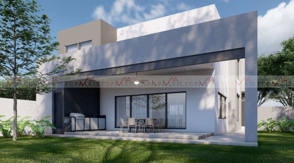 Hermosa Residencia en Pre Venta ubicada en exclusivo fraccionamiento en carretera nacional cuenta con 4 recamaras todas con walking closet, baños completo y balcón, la recamara principal se encuentra en planta baja.