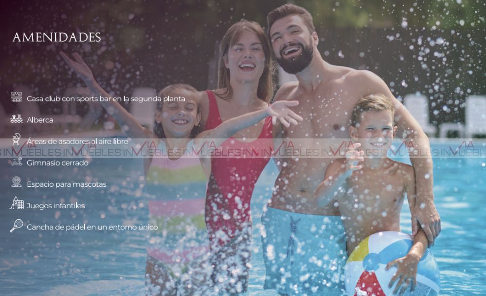 Casa club con sport bar en segunda planta, alberca, áreas de asadores, gimnasio cerrado, espacio para mascotas, juegos infantiles, cancha de padel, entre otras...