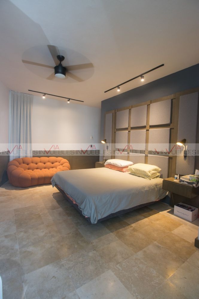 Cuenta con 3 recámaras o posible cuarta recámara con baño y vestidor, espacio para gimnasio, en el nivel inferior se encuentra la estancia o cuarto de TV con salida directa al patio. Cuenta con calefacción hidrónica, tubería de cobre, ventanas alemanas con doble vidrio, lavandería, cuarto de servicio y estacionamiento para 4 autos.