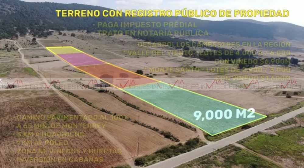 Amplio terreno con excelente ubicación sobre carretera, a pocos minutos del pintoresco pueblo de Huachichil y rodeado de importantes desarrollos como Montecana y Bodegas del Viento Viñedos, y proximamente Bodegas Don Leo Viñedos de Parras Coahuila.