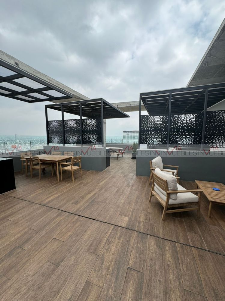 Departamento en renta de 90m2 en el centro de MTY a 5 min del Túnel de la loma larga que conecta a San Pedro. El departamento cuenta con una recámara amplia (opción a 2da) con un baño amplio con tocador y gran vestidor, 2 baños completos, cocina integral con barra desayunador movible, estufa, horno y campana.