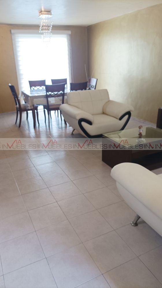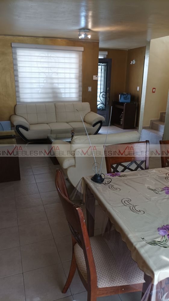 Preciosa casa en renta, equipada y amueblada, en la colonia Misión de Santa Catarina, en el municipio de Santa Catarina Nuevo León, con excelente ubicación frente a parque, en una zona muy tranquila, segura y con buenos vecinos. La casa cuenta con 2 plantas, de 3 recámaras con duela laminada, 2 baños completos y un medio baño, lavandería, cochera para 2 autos y patio. Descripción: En la primer planta está la cochera sin techar, sala comedor con minisplit de 2 y media toneladas, cocina integral con parrilla, campana, horno, refrigerador y barra; medio baño actualizado con mueble en lavabo, lavandería equipada con lavadora y secadora, tallador, boiler, tiene puerta trasera de seguridad, y patio amplio. En la segunda planta está la recámara principal con minisplit, closet vestidor, baño completo con regadera remodelada, 2 recámaras secundarias, 1 de ellas con minisplit, que comparten baño completo. La cochera no es techada, cuenta con protectores en ventanas, barandal en pasillo, muy cerca de colegios.