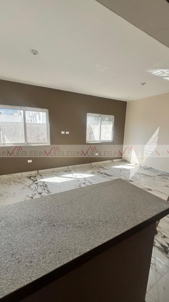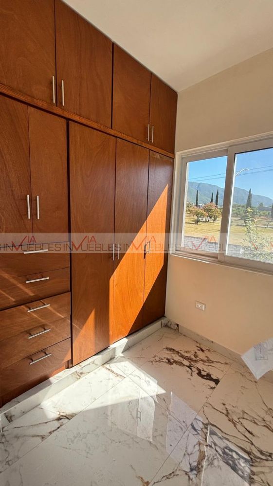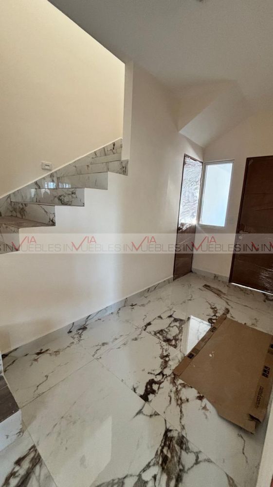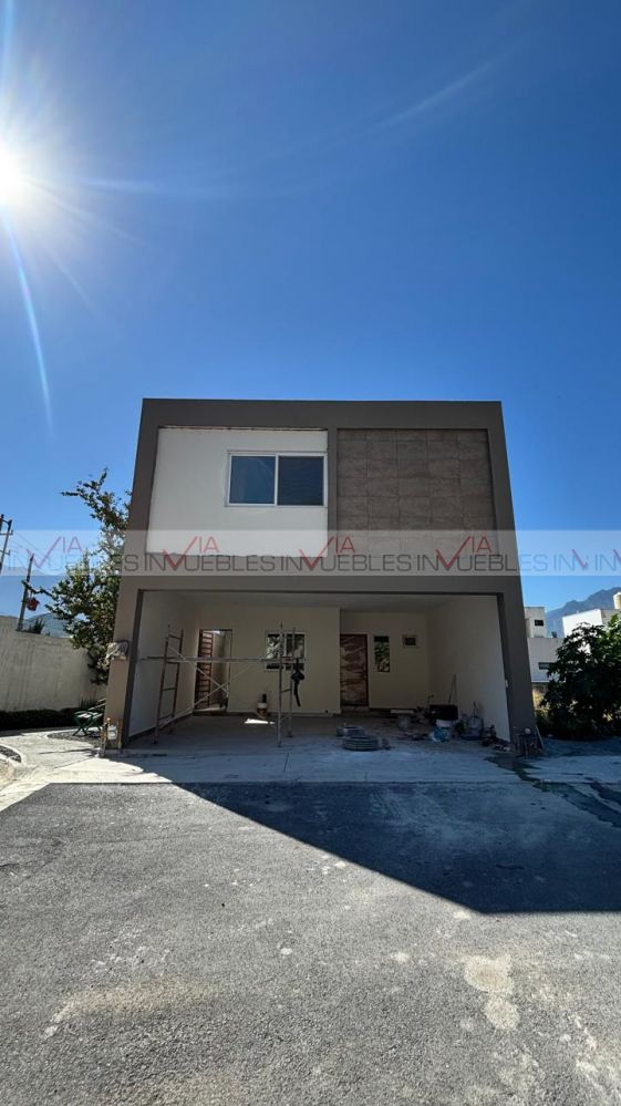 Ofrezco casa nueva en renta. T:165 C:2220 en Residencial Vista Sierra. La casa cuenta con dos plantas, en planta baja se encuentra la cocina integral, espacio sala comedor abierta, medio baño, lavandería y patio, En planta alta, 3 recámaras, la principal con baño y vestidor, las dos recamaras secundarias con closet y baño, estancia y espacio de oficina. Casa nueva a estrenar!! Con privilegiada ubicación a 5 minutos de Esfera Mty - Carretera Nacional. No se aceptan mascotas. Renta en $35,000 . Póliza jurídica.