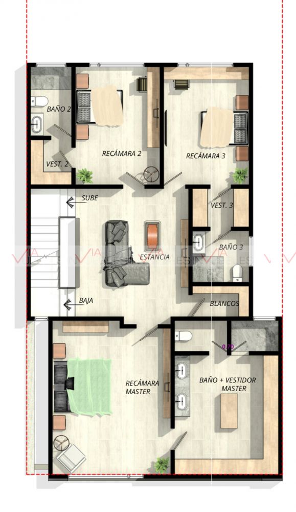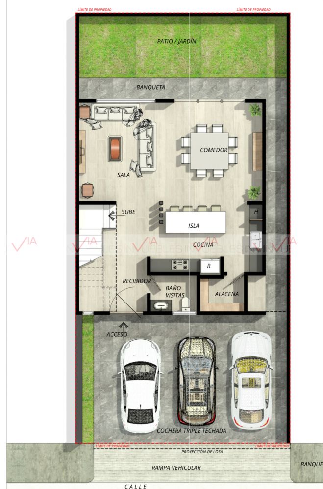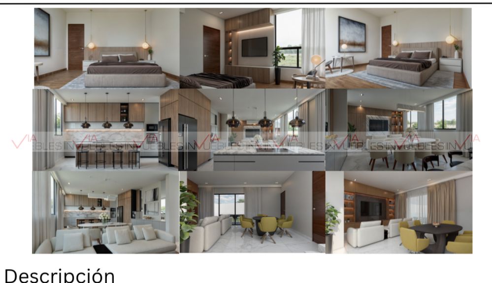1 planta con espacios abiertos de sala, comedor, cocina, baño de visitas, patio, jardín y cochera para 3 automóviles, 2 nivel con 3 recamaras, baño completo y walk -in closet, estancia familiar, 3 nivel con terraza panorámica, cuarto de juegos, oficina o cuarto de servicio con baño completo y lavandería.