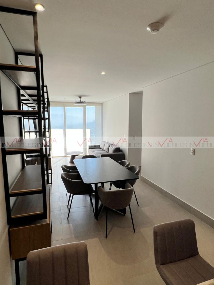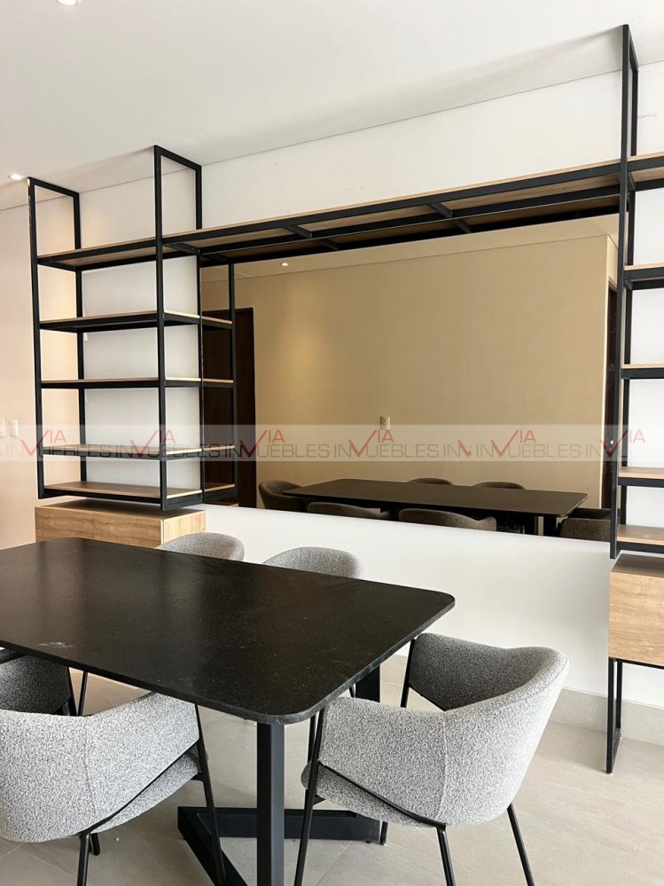 Hermoso departamento en renta en Valle Oriente, con 2 baños completos, 3 recamaras, 2 cajones de estacionamiento y una superficie de 111 metros cuadrados.