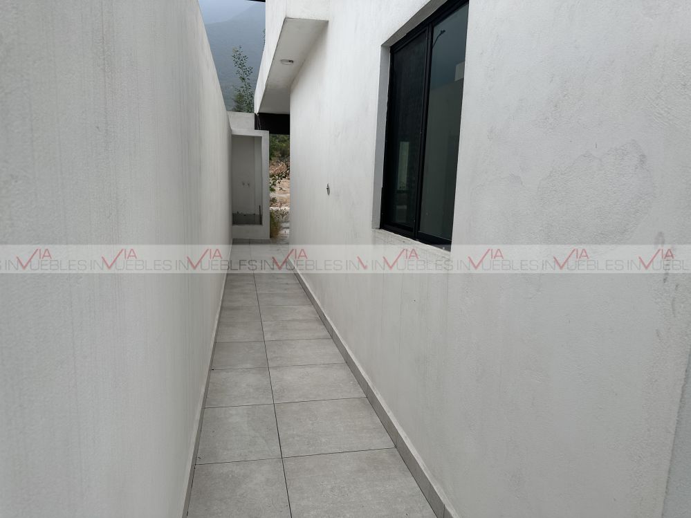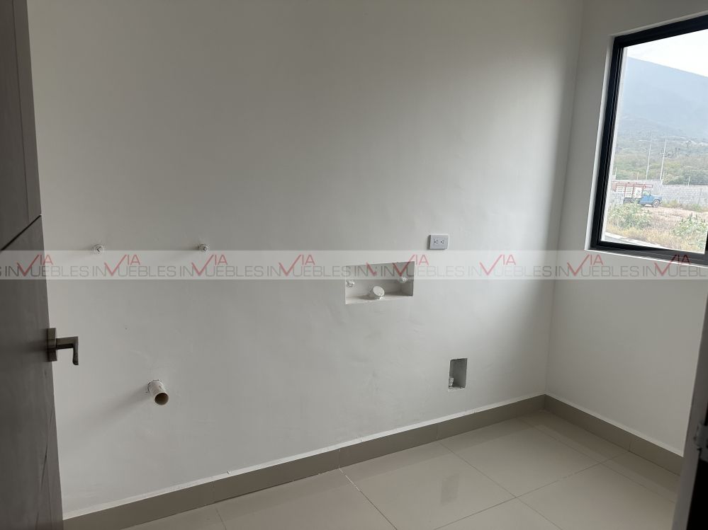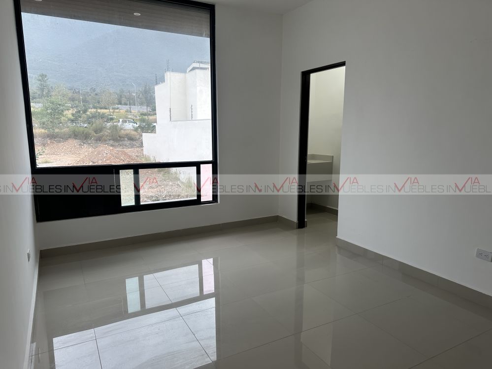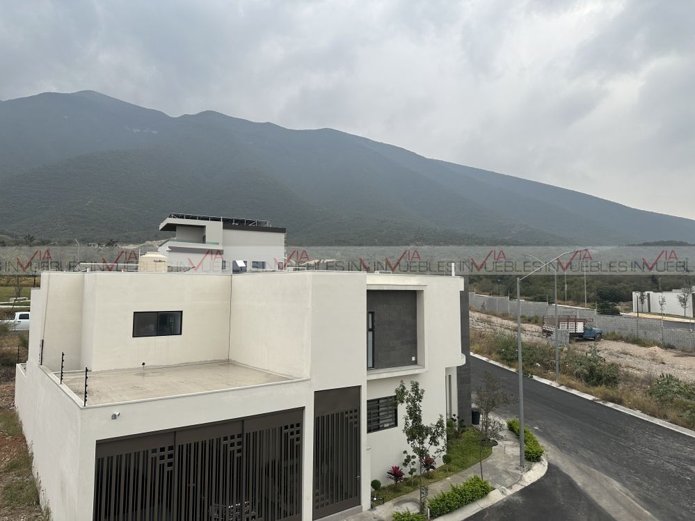 Hermosa residencia ubicada en privada, en la zona Dominio Cumbres. Cuenta con caseta de vigilancia, con hermoso parque. La casa tiene 3 niveles, en planta baja sala comedor, cocina y alacena espaciosa, medio baño y área para jardín. Cochera para 2 carros. En el segundo nivel tenemos una estancia de buen tamaño, recamara principal con walk in closet y baño completo, dos recamaras con baño completo y closet de pared, también cuenta con cuarto de lavandería. En el tercer nivel cuenta con una sala de TV y con dos terrazas, una con vista a la hermoso Cerro de las Mitras y la otra con vista a la ciudad. Ven a conocerla y disfruta del aire puro y belleza del lugar. Estrénala ya! No pierdas la oportunidad de vivir en este increíble espacio con una ubicación privilegiada.