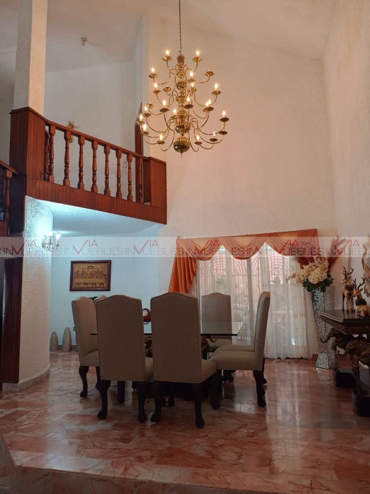 Hermosa casa en renta semi-amueblada en esquina de 3 recámaras, 1 baño completo y dos medios baños, recámara principal con balcón y vista al cerro, todas las recámaras cuentan con cuarto clóset y roperías, 2 minisplit (uno en cada recámara), 3 abanicos de techo, hermosos acabados de madera en escalera en forma de caracol y alrededor de la casa, amplia sala-comedor con doble altura y candiles decorativos, cocina integral con cubierta de granito, barra desayunadora, espacio de antecomedor interior, cuarto de zinc en segundo nivel, bodega, patio con asador, pórtico en el patio, excelente ubicación cerca de avenidas principales, centros comerciales y colegios.