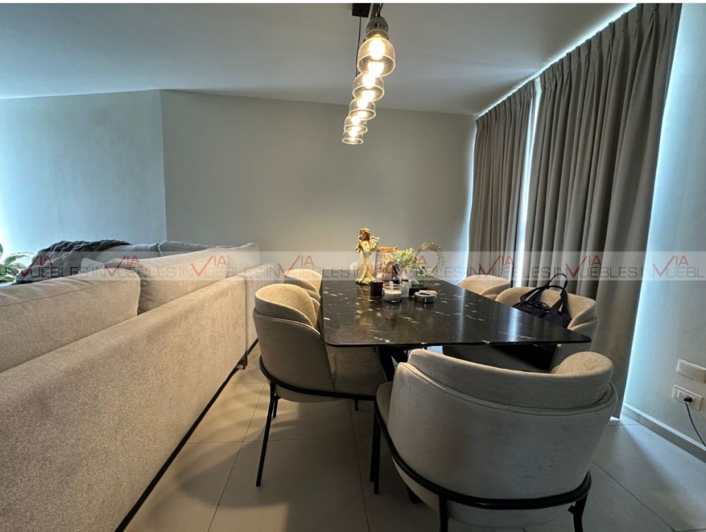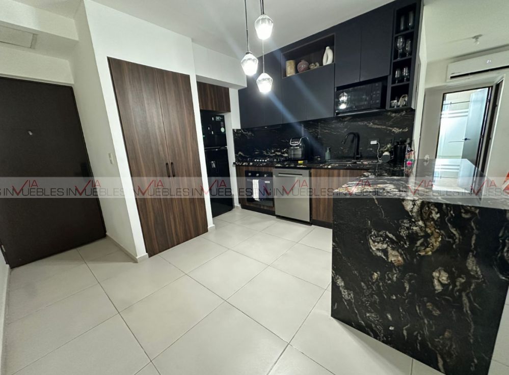 Renta de acogedor departamento, ubicado en la zona centro de Mty con fáciles accesos equipado, amueblado, consta de 2 recamaras, recamara principal con walking closet, 2 baños completos, sala, comedor, cocina integral, centro de lavado, tres minisplit, el edificio cuenta con amenidades que son gimnasio, salas para reuniones, asadores, terraza, salón de eventos en la planta baja y un cajón de estacionamiento. Se aceptan mascotas de raza pequeña. Renta mensual de $28,500 + $3,000.00 de mtto. Póliza Jurídica.