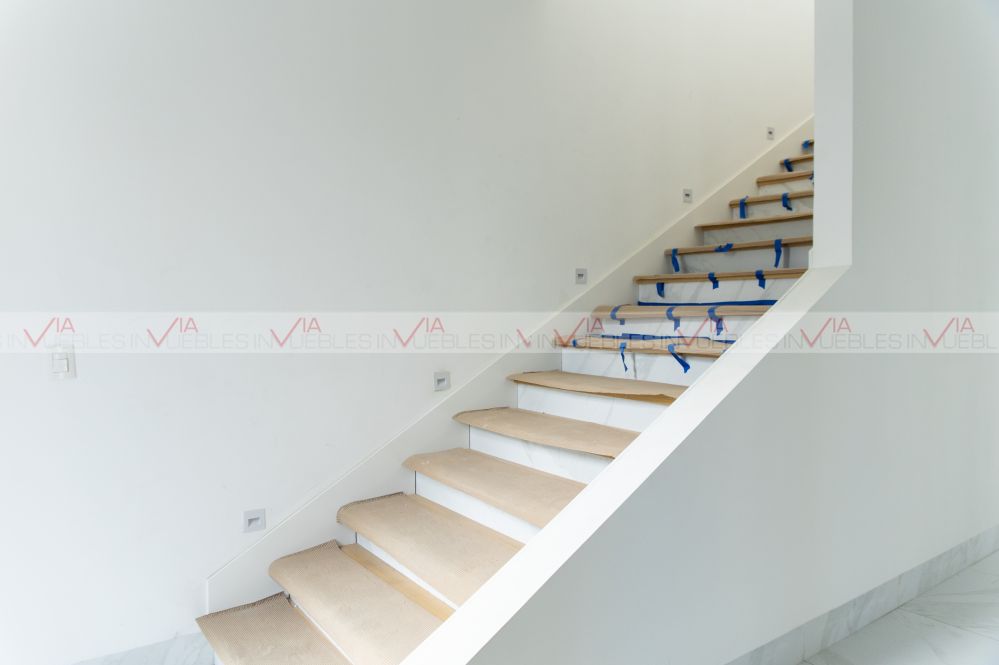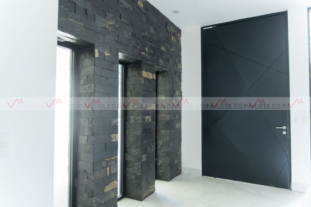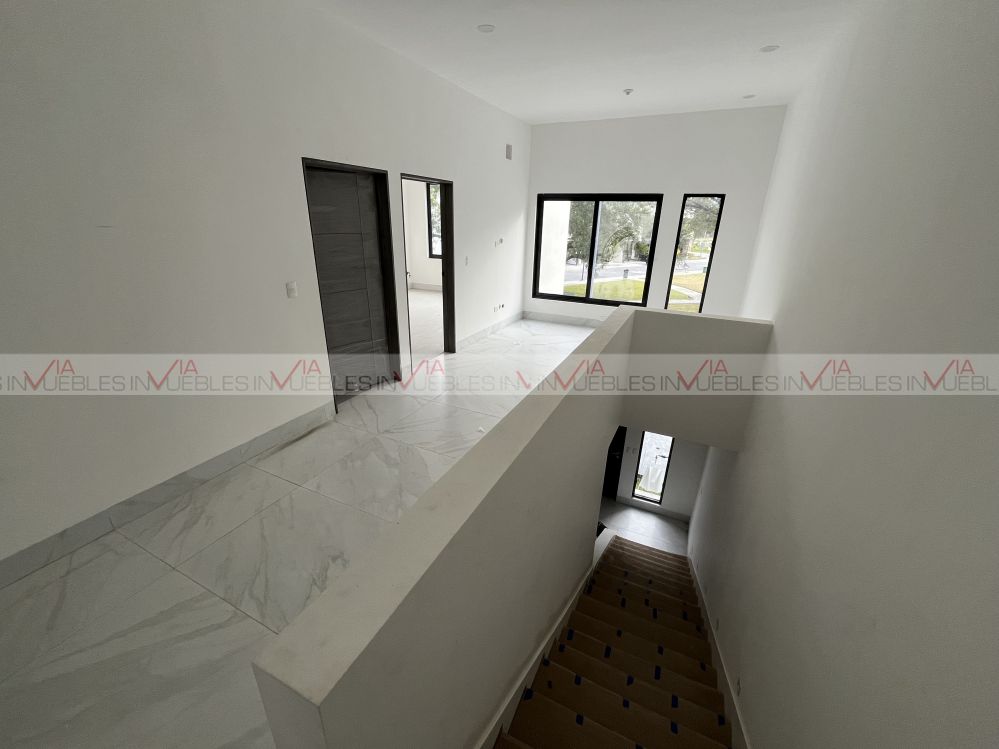 De dos niveles, tres recámaras, cuatro baños y medio, cuenta con cuarto de servicio con entrada al frente, cocina de madera con puertas tipo encino y con placa de cuarzo, lavandería en el segundo piso, Iluminación en escalera a base de lámparas, escaleras en huella de madera, salidas para paneles solares.