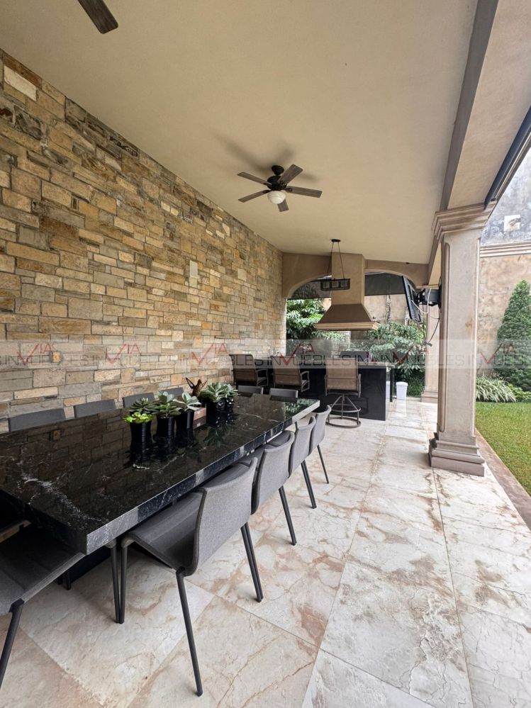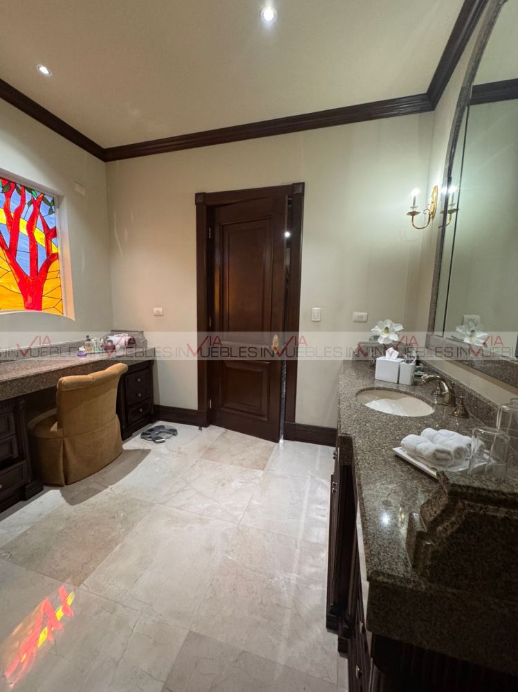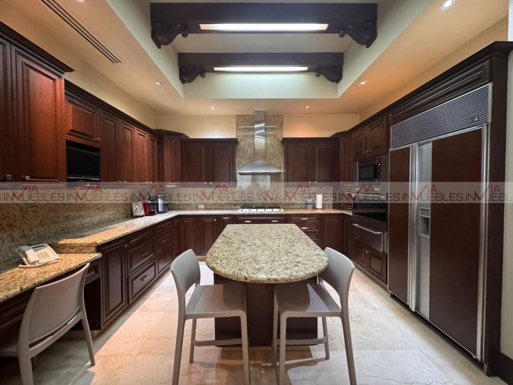 Esta residencia incorpora detalles de primer nivel como pisos de mármol y madera sólida, duela de caoba en techos, clima seccionado en toda la casa, cisterna de 15,000 litros, suavizador de agua y 2 cuartos de servicio. Además, incluye caseta de vigilancia para mayor tranquilidad.
