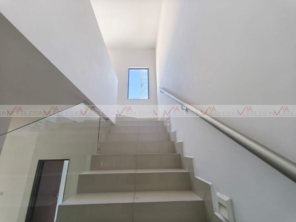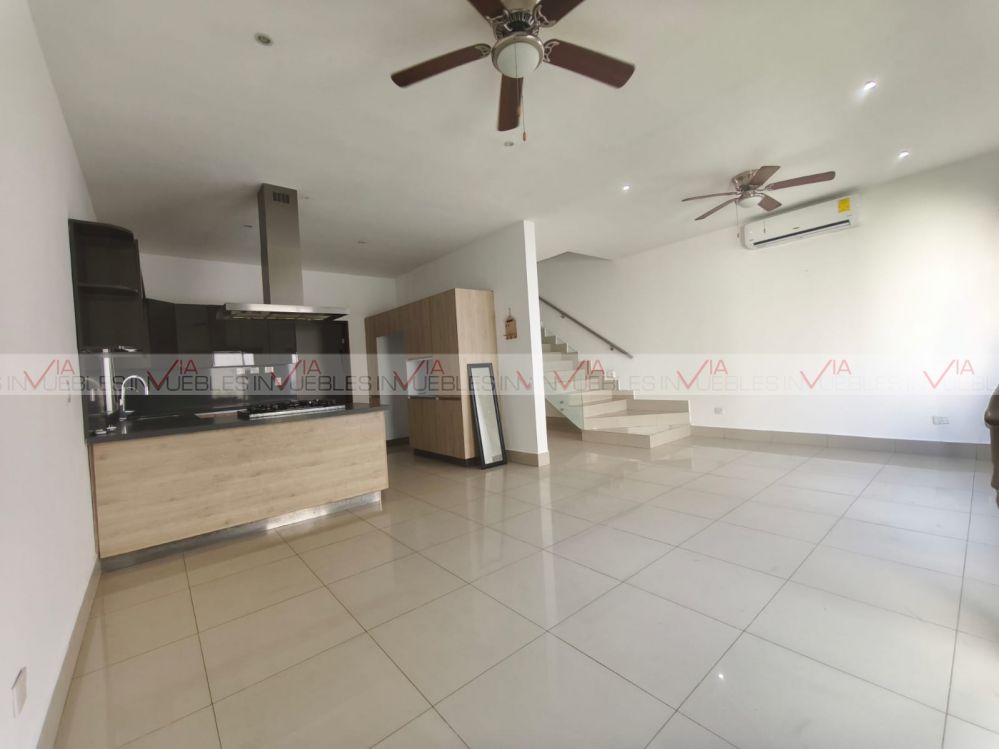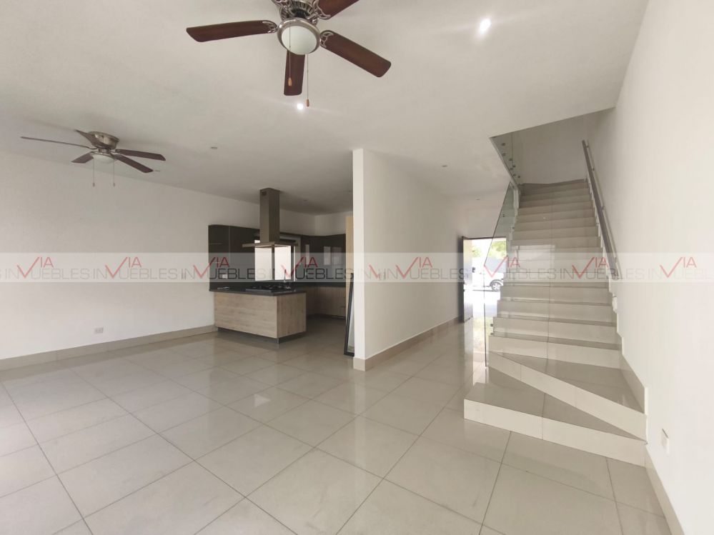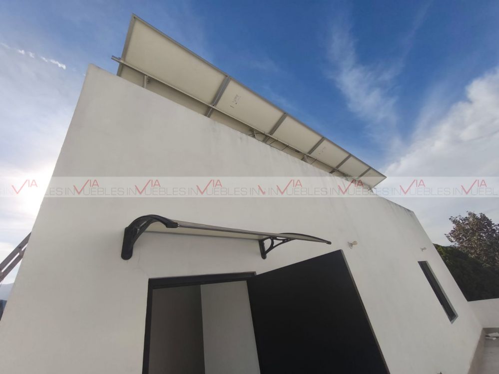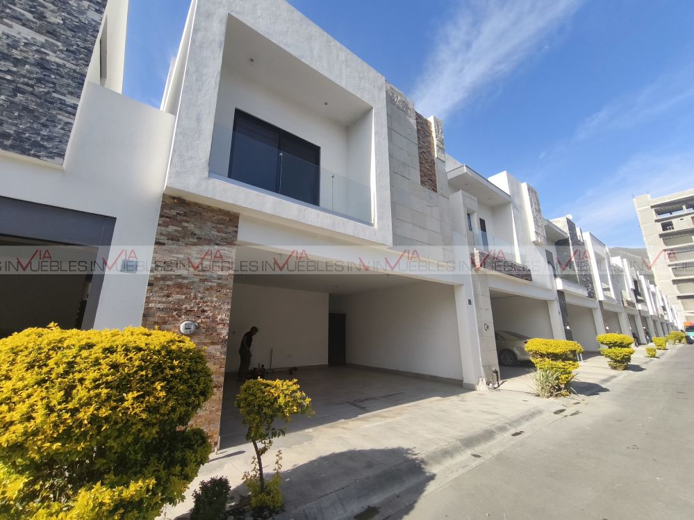 Excelente casa en renta en Privada los Vientos en la zona de El Barro, en carretera Nacional, se encuentra en una privada de tan solo 13 casas, donde puedes disfrutar de la tranquilidad, cuenta con una amplia cocina equipada con estufa y campana, cuarto de lavado, sala comedor que se integran con la cocina para que puedas disfrutar de tus reuniones, en el segundo piso encontraras 3 habitaciones, cada una con su baño, la principal con baño y vestidor, y se cuenta con una estancia familiar, el 3er piso cuenta con el cuarto de servicio con su baño completo y una terraza muy amplia para que disfrutes con tu familia, la casa cuenta con Paneles solares, es una excelente opción, ven a conocerla, agenda tu cita!!