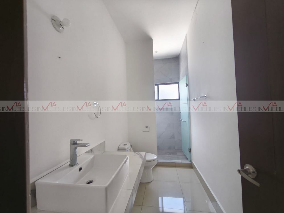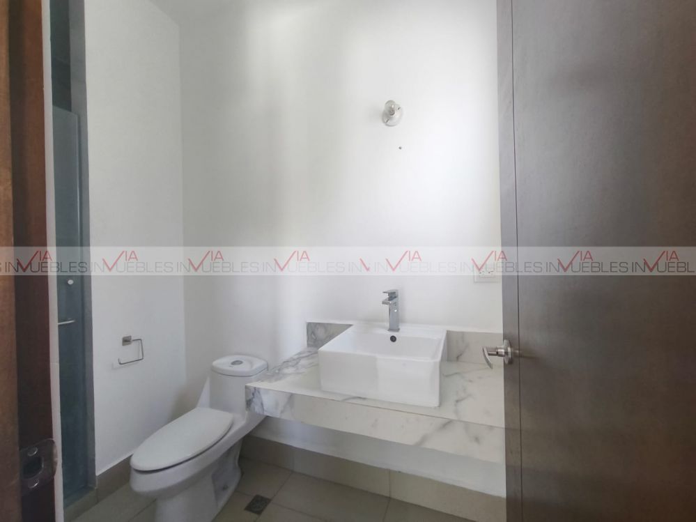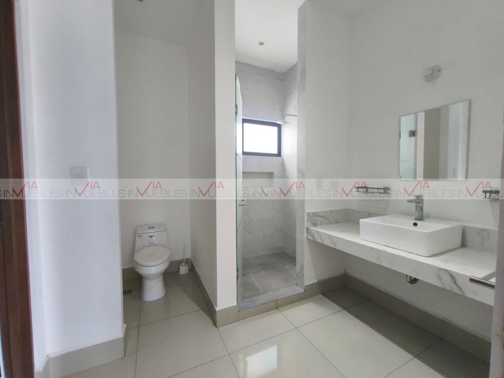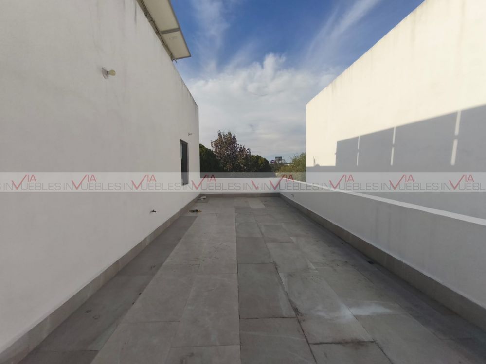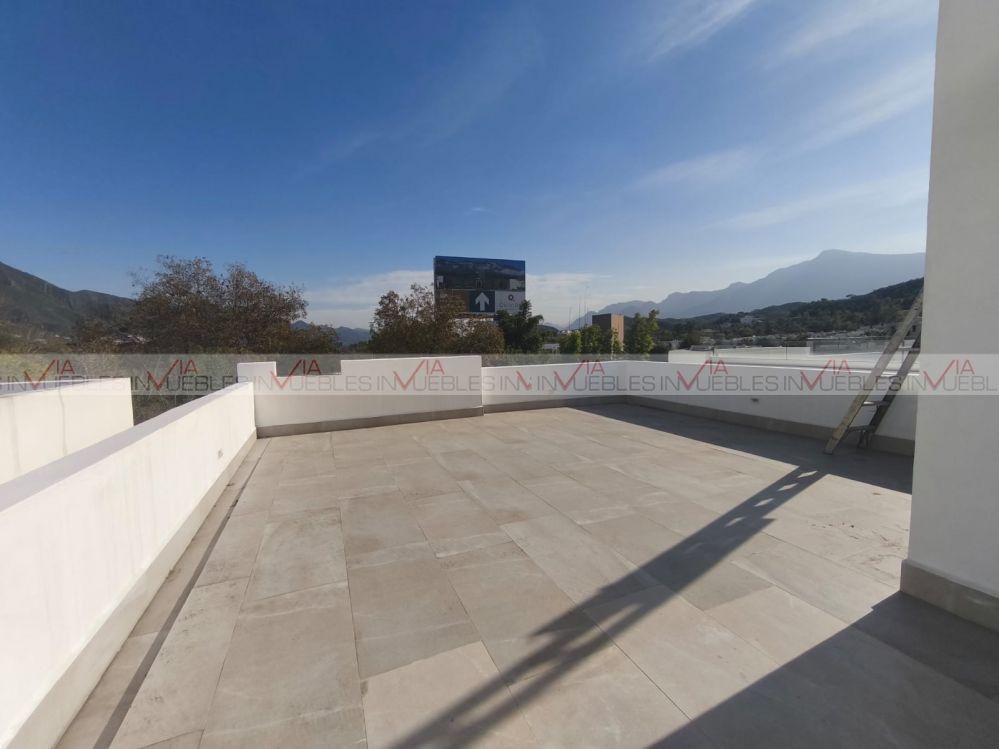 Excelente casa en renta en Privada los Vientos en la zona de El Barro, en carretera Nacional, se encuentra en una privada de tan solo 13 casas, donde puedes disfrutar de la tranquilidad, cuenta con una amplia cocina equipada con estufa y campana, cuarto de lavado, sala comedor que se integran con la cocina para que puedas disfrutar de tus reuniones, en el segundo piso encontraras 3 habitaciones, cada una con su baño, la principal con baño y vestidor, y se cuenta con una estancia familiar, el 3er piso cuenta con el cuarto de servicio con su baño completo y una terraza muy amplia para que disfrutes con tu familia, la casa cuenta con Paneles solares, es una excelente opción, ven a conocerla, agenda tu cita!!