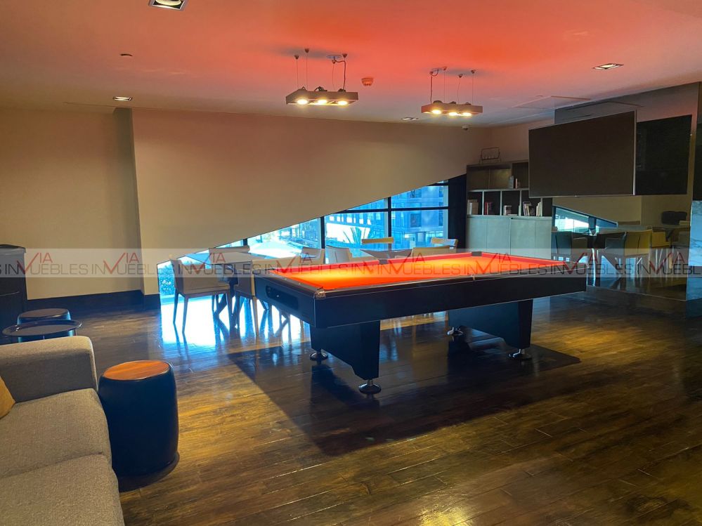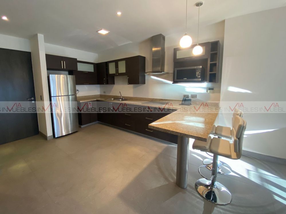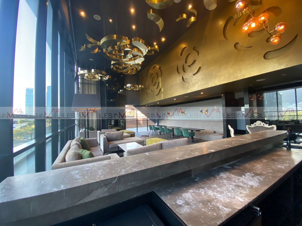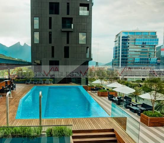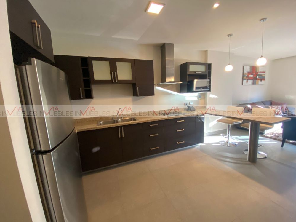 Departamento amueblado en torre Magma Towers, con ubicación privilegiada en Valle Oriente. Cuenta con 1 recámara con escritorio, walk-in closet con baño completo. Sala, comedor con mueble de Televisión, ventanal deslizable con vista hacia la Sierra Madre. Cocina integral con refrigerador, parrilla con campana, micoondas, barra desayunadora con 2 sillas. Equipado con clima central, lavasecadora, boiler, sink. Le corresponde 1 cajón de estacionamiento, seguridad 24/7.