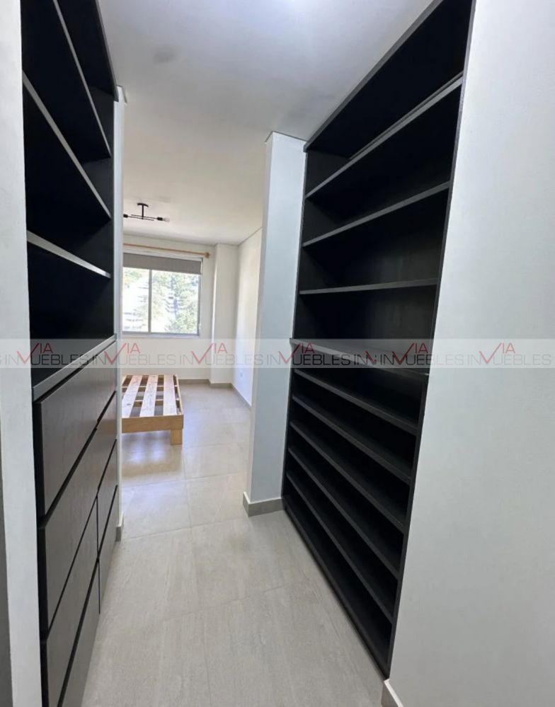 Hermoso departamento con 93 mts con vista al Cañón del Huajuco, con 2 recámaras (la principal con walking clóset, y base king size), clóset de madera amplios, 2 baños completos con acabados de lujo, cocina integral equipada con barra de cuarzo, estufa, horno, campana, refrigerador, centro de lavado y 3 minisplit frío/calor nuevos, chapa inteligente, y 2 cajones de estacionamiento.