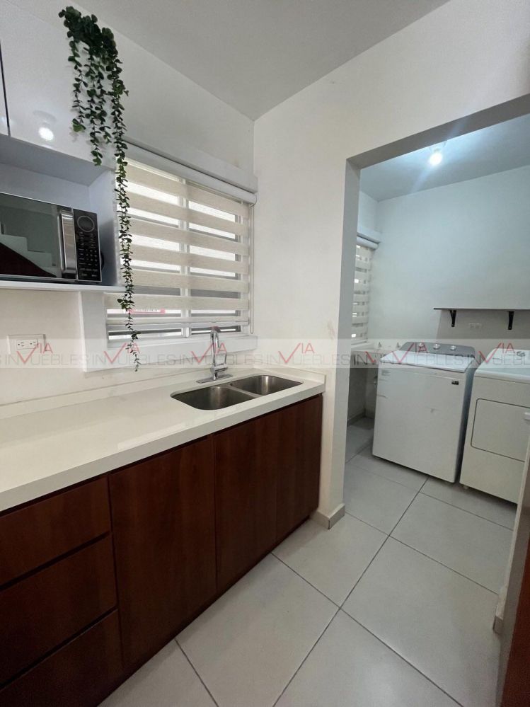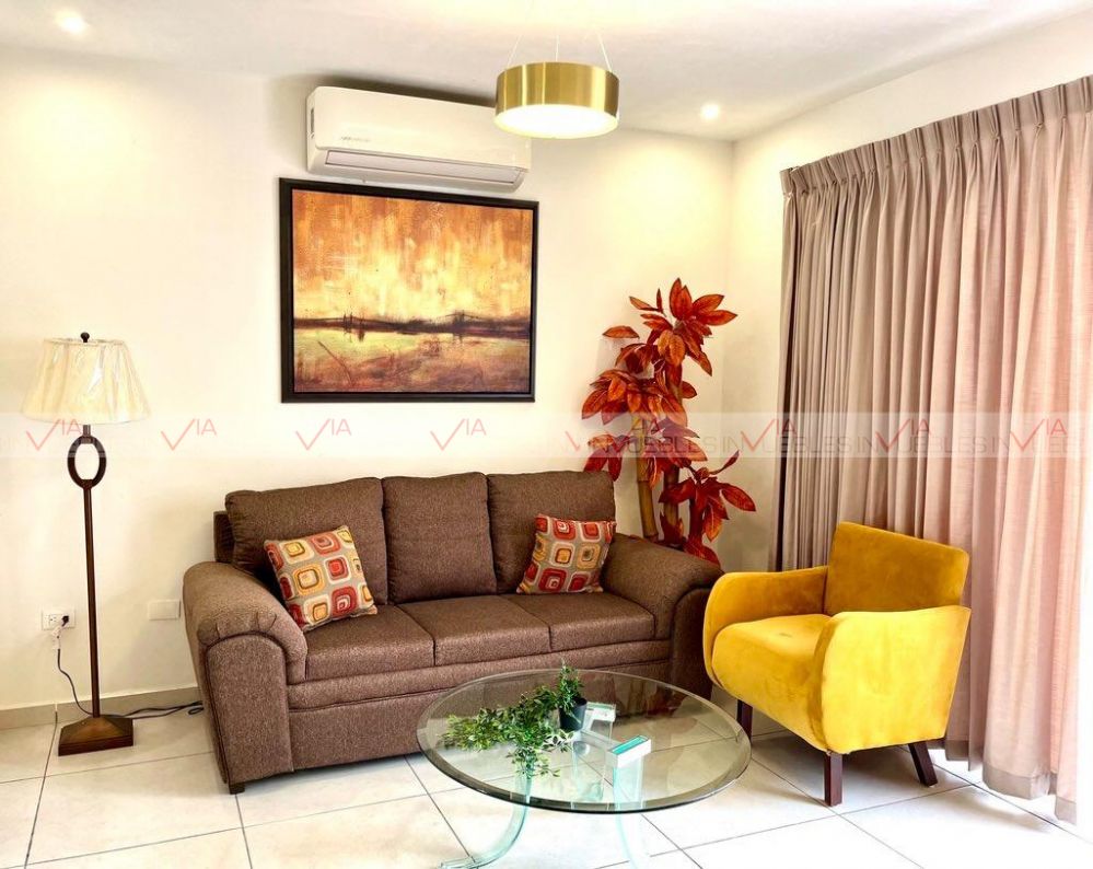 Casa de 2 pisos en zona residencial y privada con vigilancia 24/7 , propiedad de 2 pisos, cochera doble , amplia área de sala comedor , cocina integral con estufa , refrigerador y barra desayunador . Espacio de lavandería techada con lavadora , secadora y boiler de paso , pasillo integrador a patio amplio , en planta baja se tiene un medio baño .