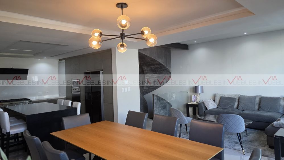 En Planta Baja tejen un recibidor de doble altura que le da amplitud y elegancia, además de la sala comedor, Cocina integral equipada con electrodomésticos de alta calidad, cubierta de cuarzo, elegante baño de visitas, una escalera con diseño moderno que conduce a la planta alta, donde se encuentra la recámara principal con baño y walking closet, una estancia, dos recamaras secundarias con baño y vestidor cada una.