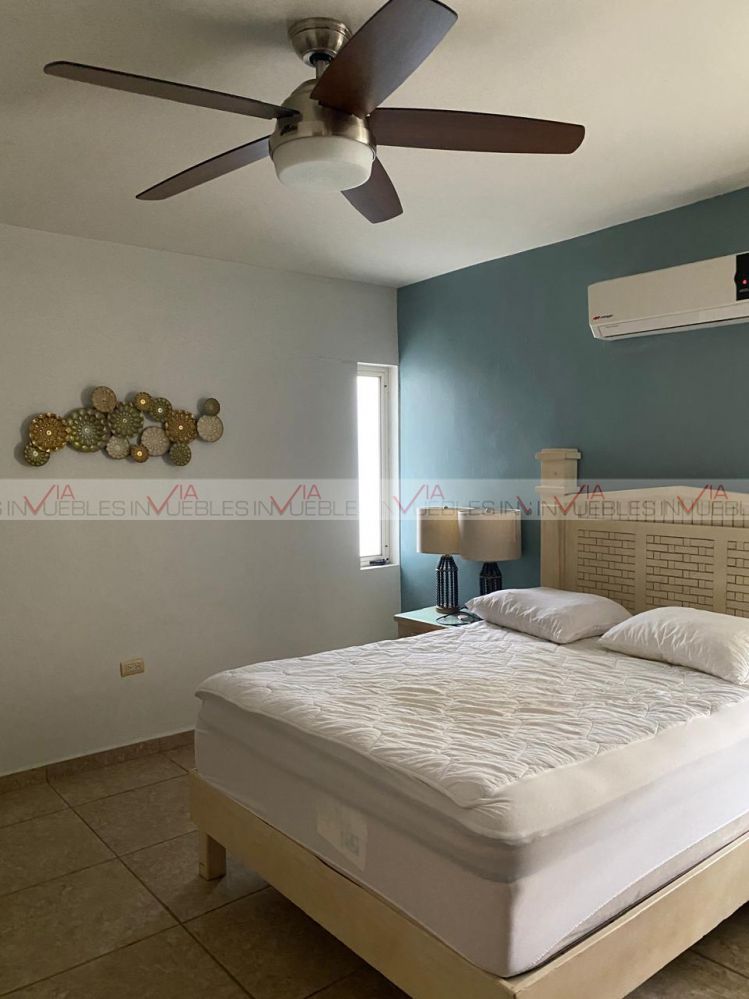 Departamento de dos recamaras totalmente amueblado y equipado. Su distribución consta de cocina, comedor, sala, uno y medio baños, ventiladores de techo, minisplit, amplios closets con caja de seguridad y lavandería con lavadora y secadora.