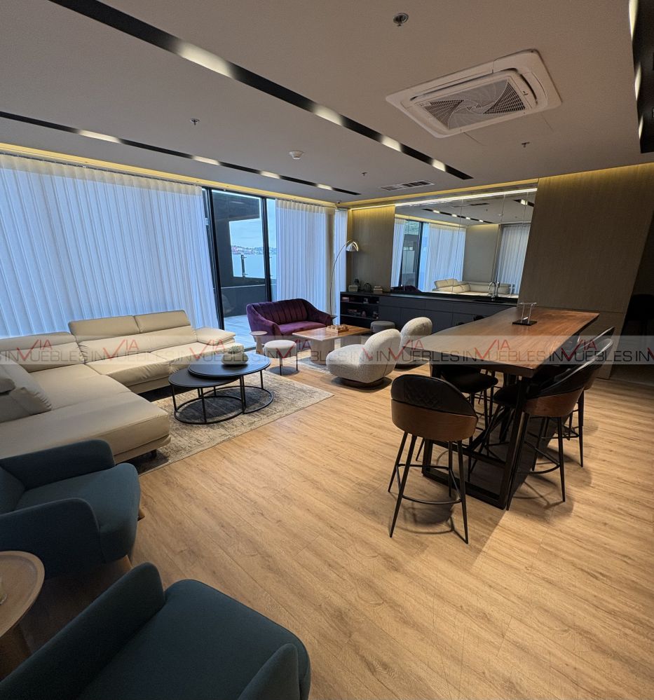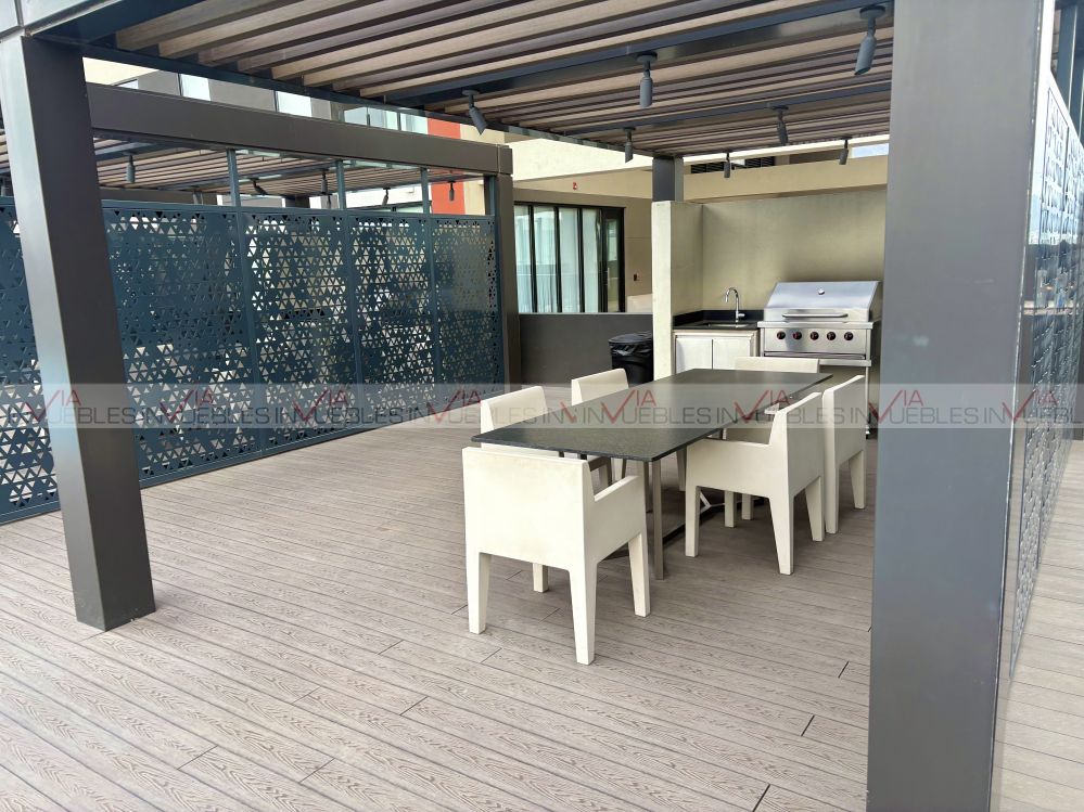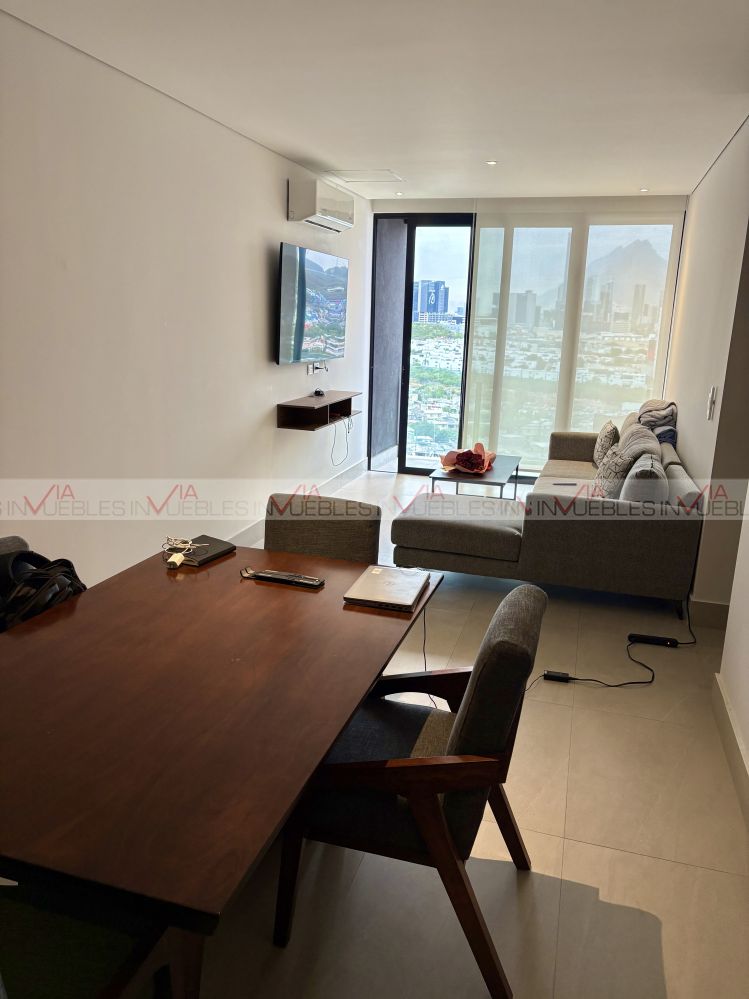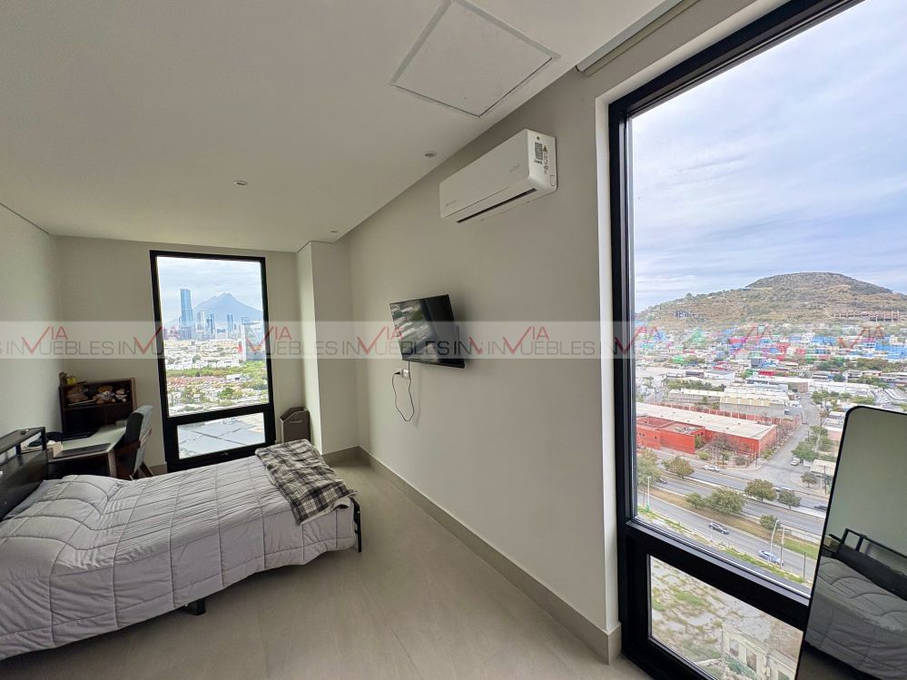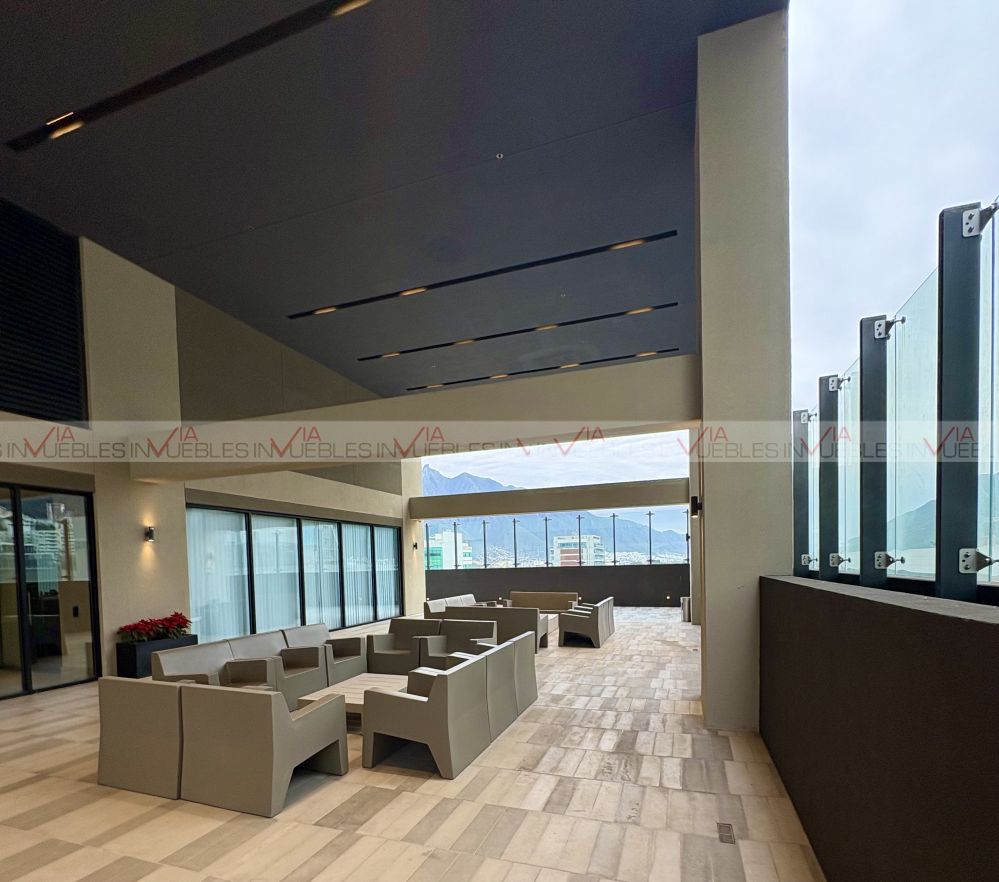 Hermoso e impecable departamento, como nuevo, excelente iluminación y orientacion, cocina equipada con refrigerador, estufa eléctrica, micro y área de centro de lavado independiente incluida lavadora-secadora, sala comedor con muebles, balcón con vistas estupendas hacia San Pedro GG, 3 recamaras 2 con walk-in closet, 2 de ellas closet completo, 2 baños completos. Estupendas amenidades privadas y de acceso controlado huella digital, terrazas y zona de asadores, alberca panorámica y semi-olímpica, salones para eventos, Whisky Room, Salon de Té, Pet Park, juegos infantiles, y Ludoteca así como Gimnasio equipado, Biblioteca. Ubicación inmejorable a 7 min del Tec, y 5 min de Valle Oriente, Farmacias, Restaurantes, servicios varios y tiendas de autoservicio, Escuelas y Hospitales. Disfrútalo hoy! tu mejor inversión.