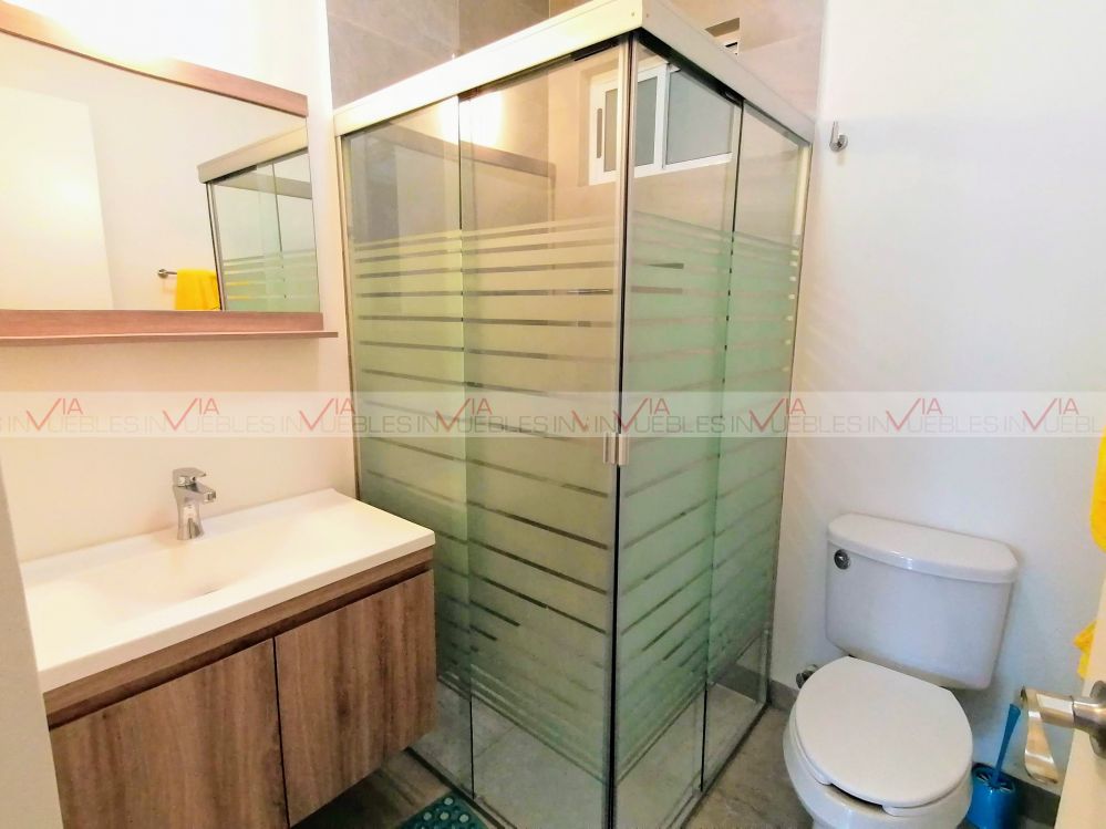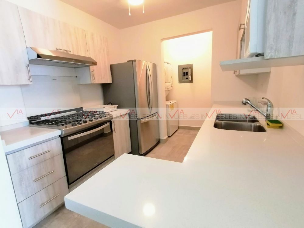 Cuenta con cocina integral, cuarto de lavado, sala-comedor, recámara principal con vestidor y baño; recámara secundaria con closet de pared y baño a compartir con área social. Dos cajones de estacionamiento.