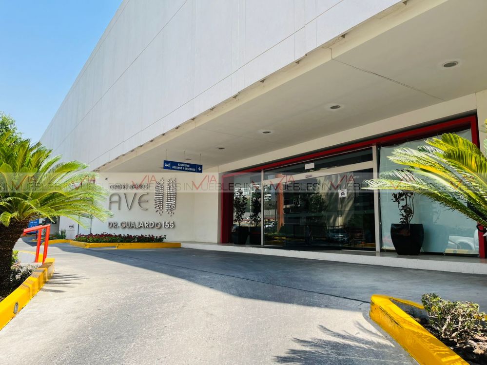 Local comercial en renta de 54m2 en el Centro Médico AVE con piso cerámico, plafones, iluminación y aire acondicionado. El consultorio cuenta con área de recepción, 2 privados, una bodega y un área de trabajo abierta. Especial para todas las disciplinas profesionales médicas. El edificio cuenta con quirófanos, laboratorio, farmacias y otros servicios, así como un amplio estacionamiento de visitas. Vigilancia 24 hrs. Excelente ubicación en una de las áreas médicas más importantes de Monterrey, con rápido acceso a Morones Prieto, Gomez Morín y Venustiano Carranza. La renta es más IVA y se paga aparte el mantenimiento de $2,300 pesos.